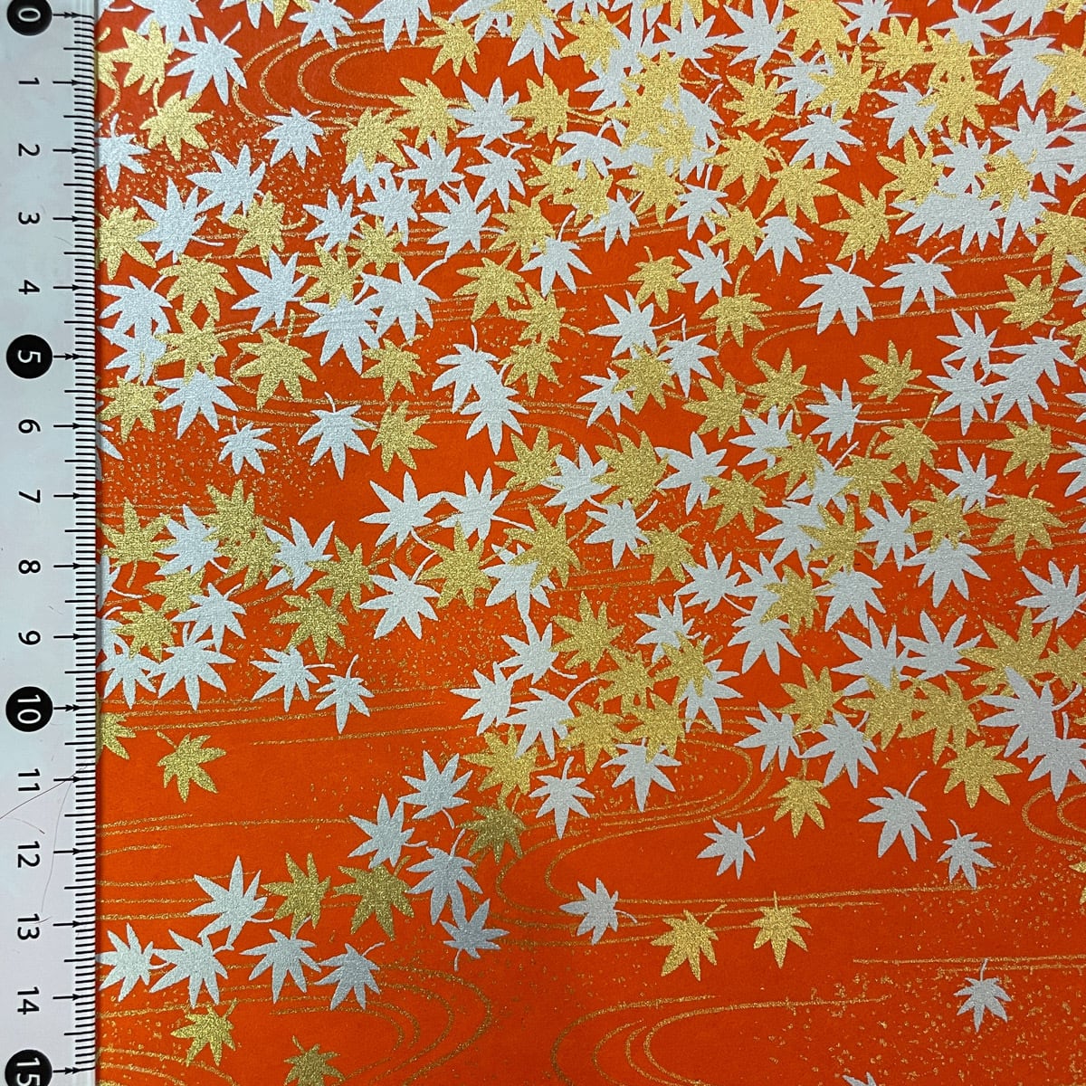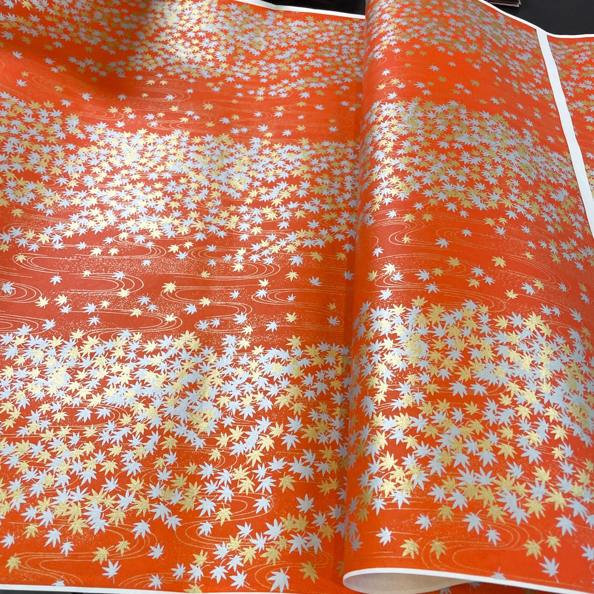 友禅和紙 豪華 朱色地に金銀もみじ 紅葉 3段柄 大判 約63x93 cm 千代紙 YUZEN dyeing 126507308