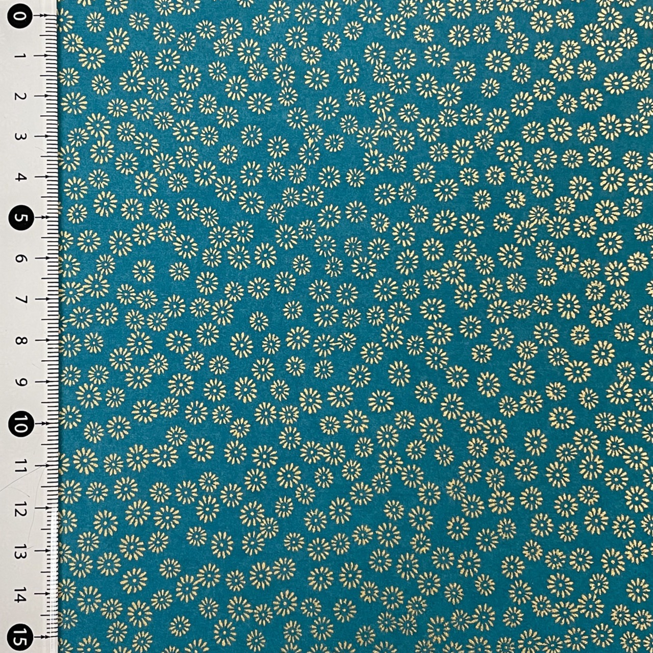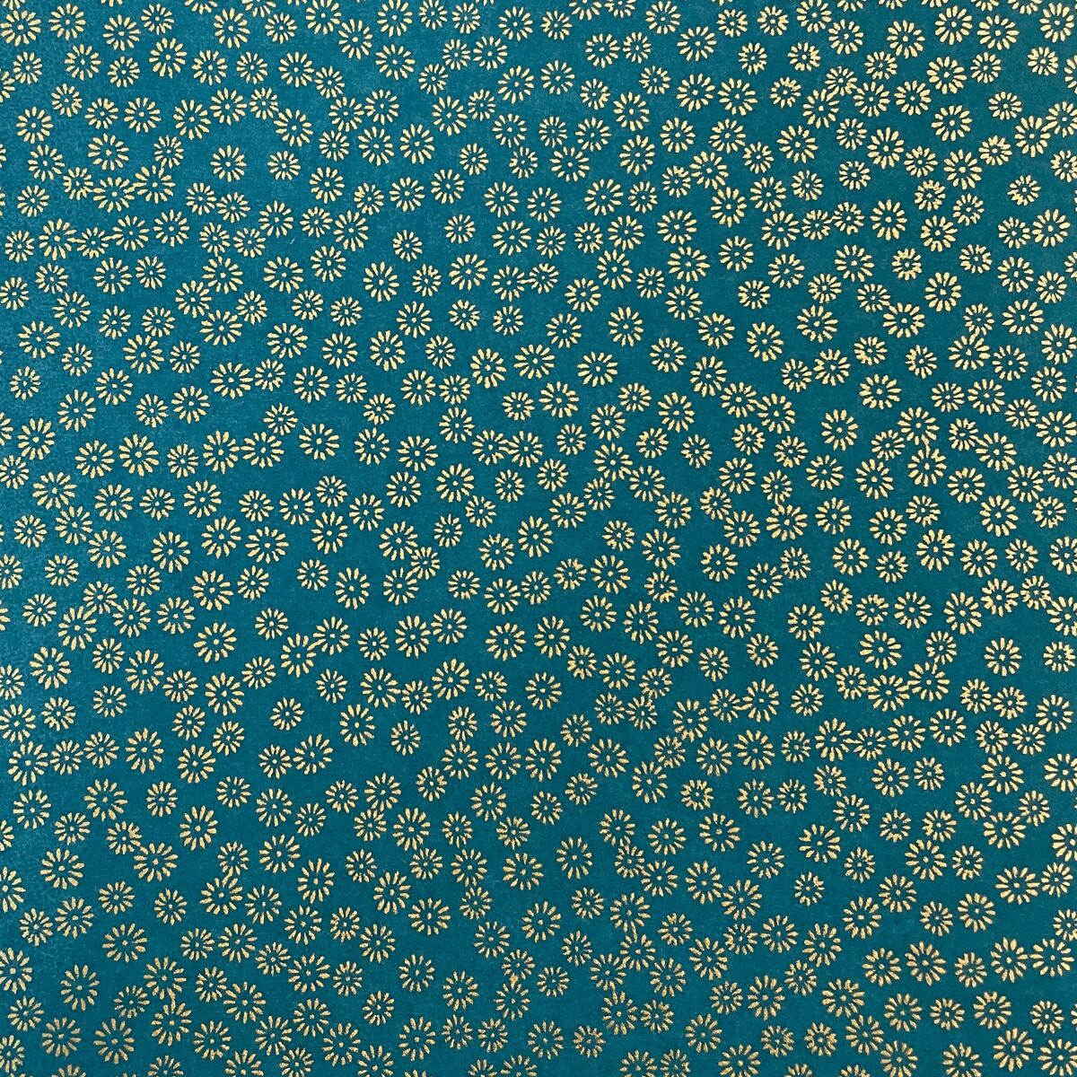 金色が華やかな加賀友禅 和紙 小花 小菊 青緑 大判 約63x93cm KAGA YUZEN Dyeing