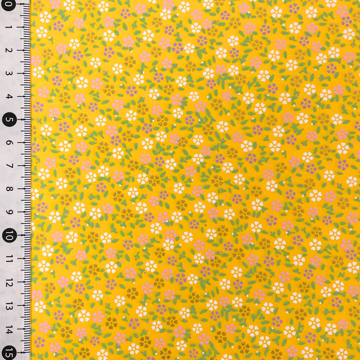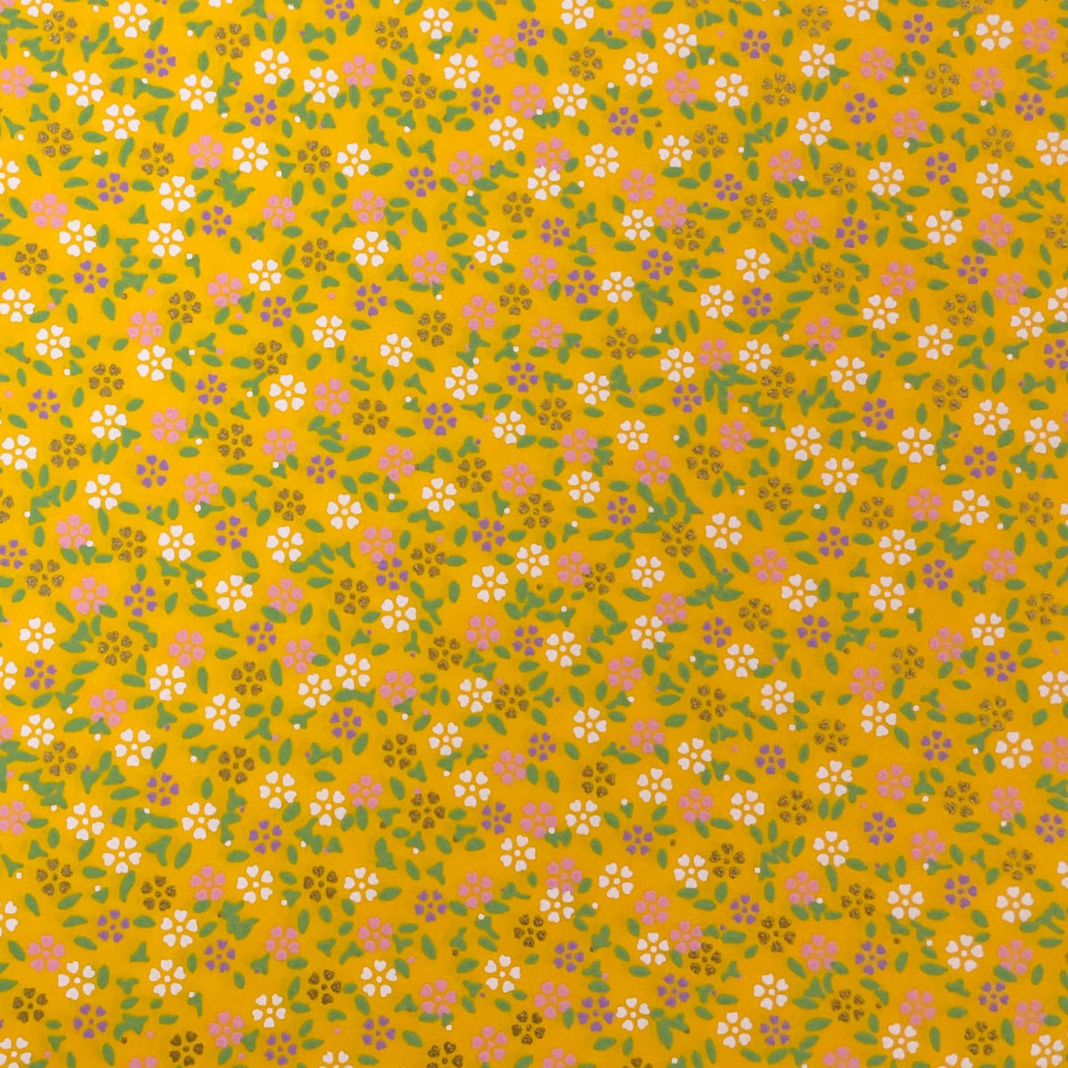 友禅和紙 明るい黄色に小花 小さな小さな桜 山吹色 大判 約63x93cm 千代紙 YUZEN dyeing