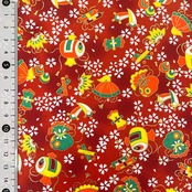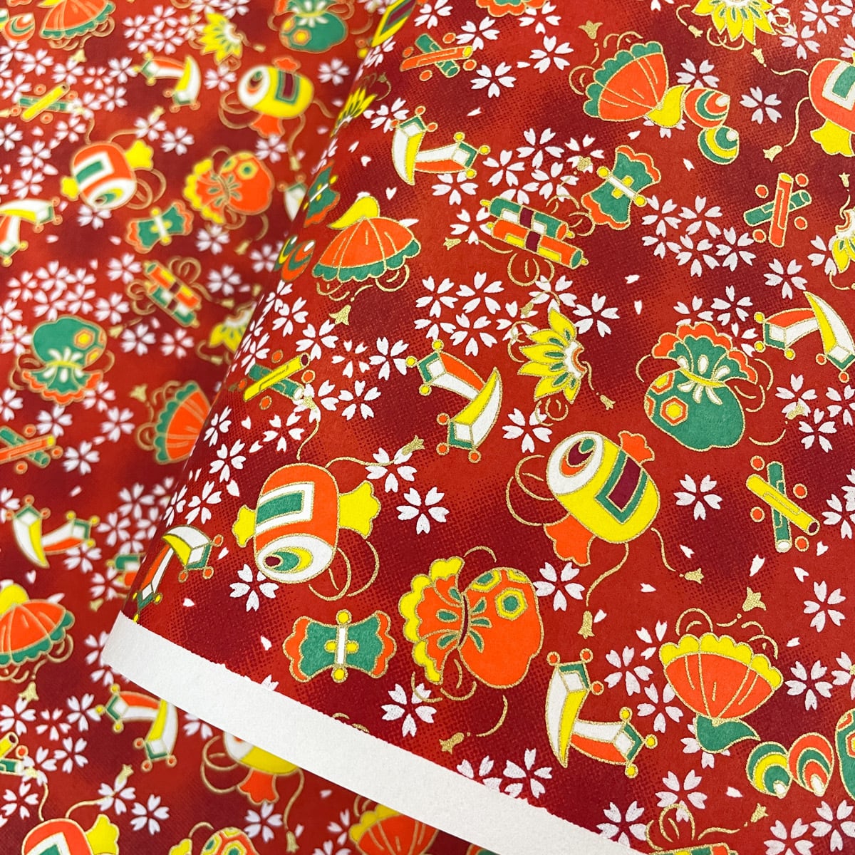 友禅和紙 赤のぼかしに宝づくし 白の桜ちらし 大判 約63x95cm 千代紙 YUZEN dyeing
