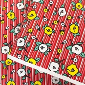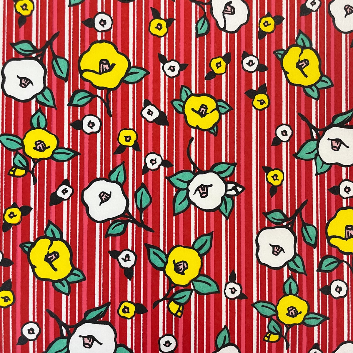 華やかな友禅和紙 縞に白椿と黄椿 レトロモダン 赤 大判 約63x93cm 千代紙 YUZEN dyeing