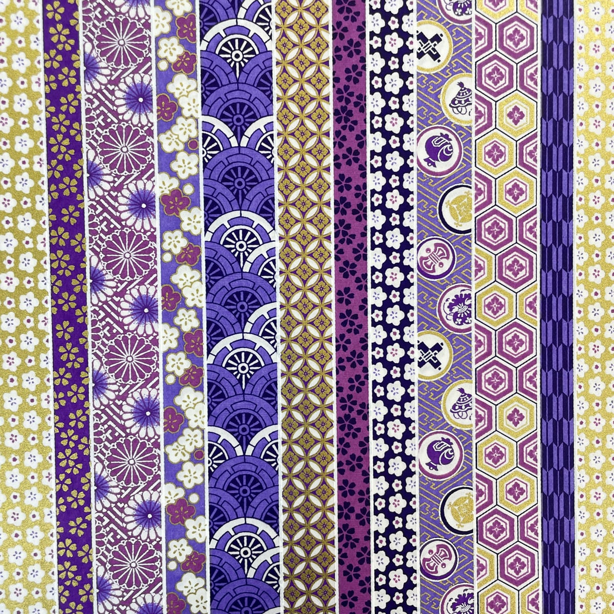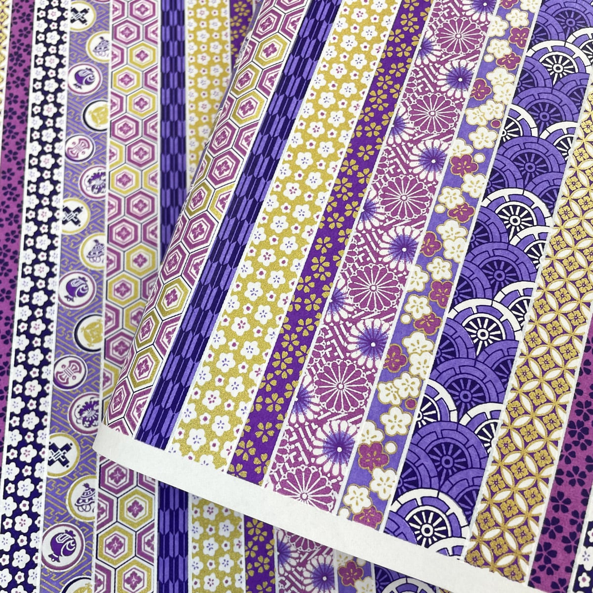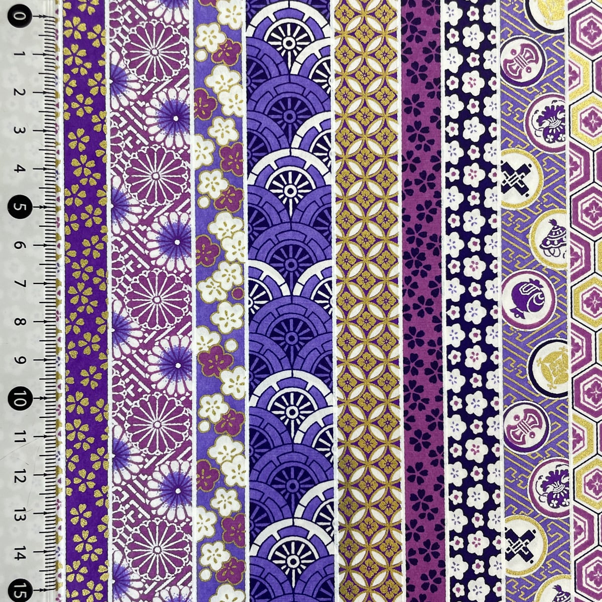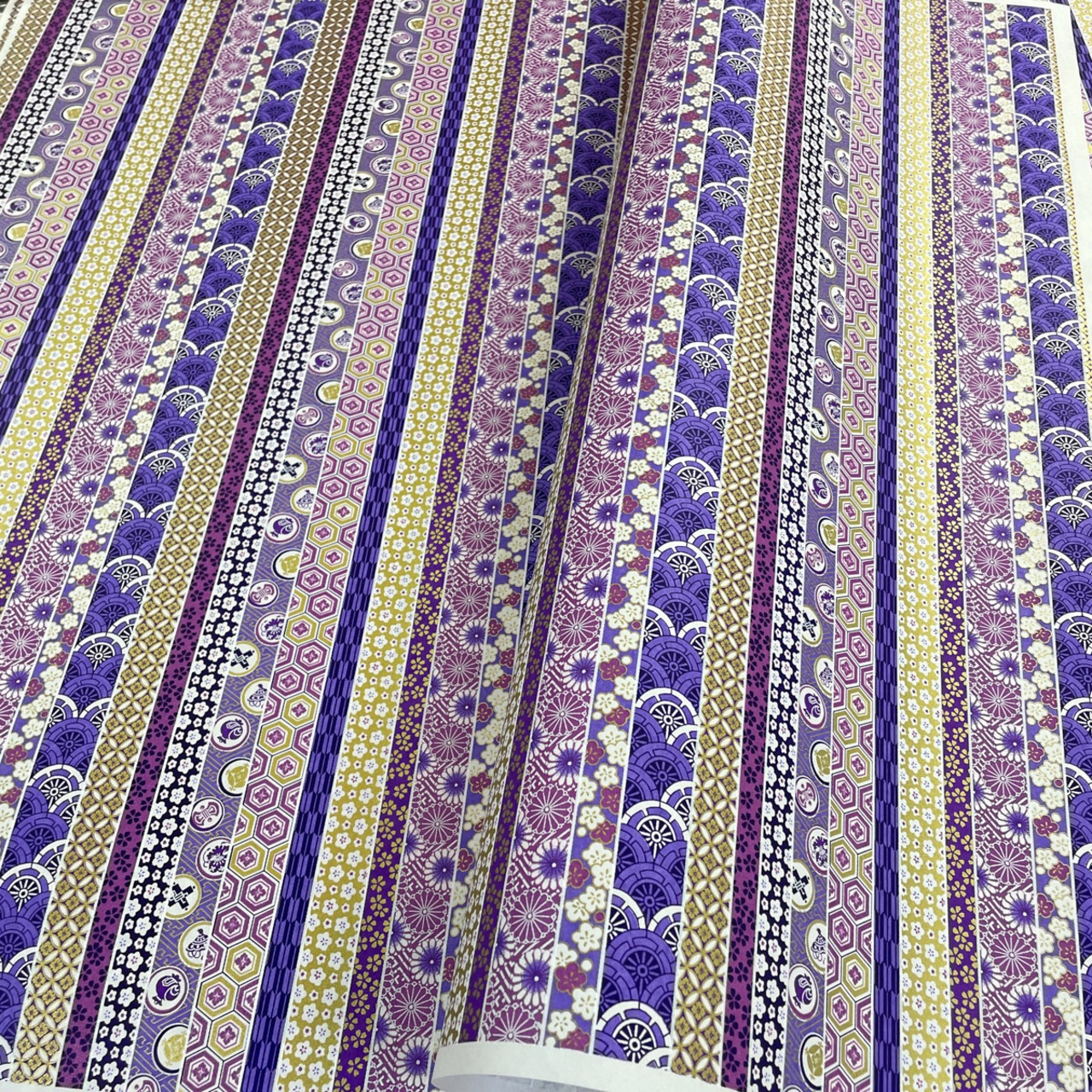 友禅和紙 縞に車紋 亀甲 七宝 宝づくし 紫系 大判 約63x93cm 千代紙 YUZEN dyeing