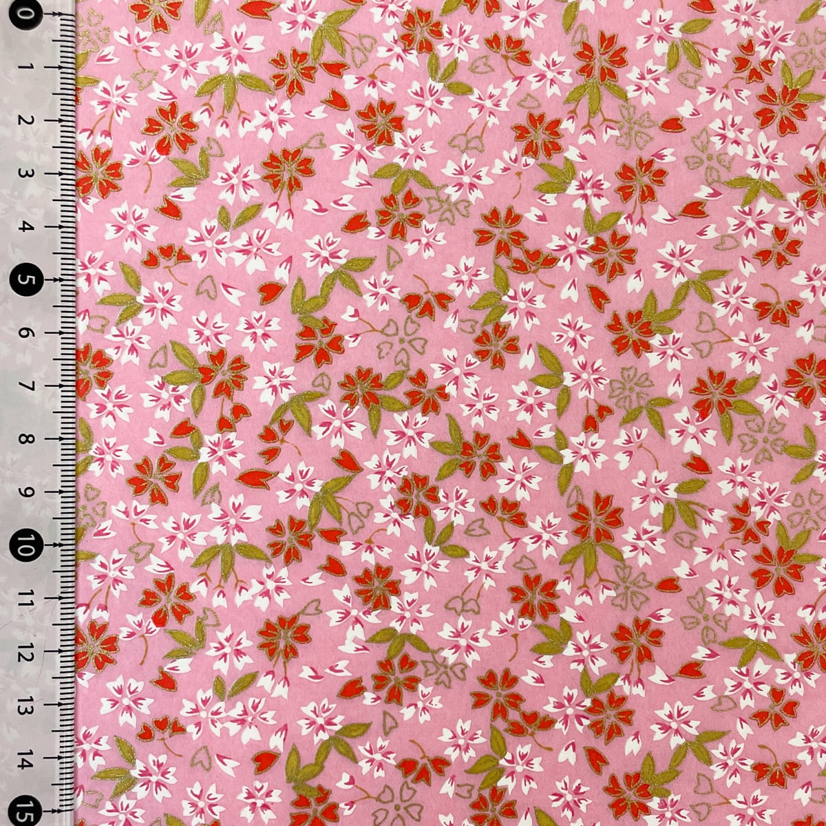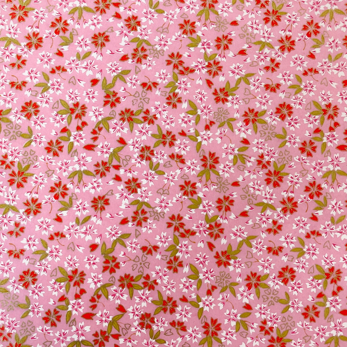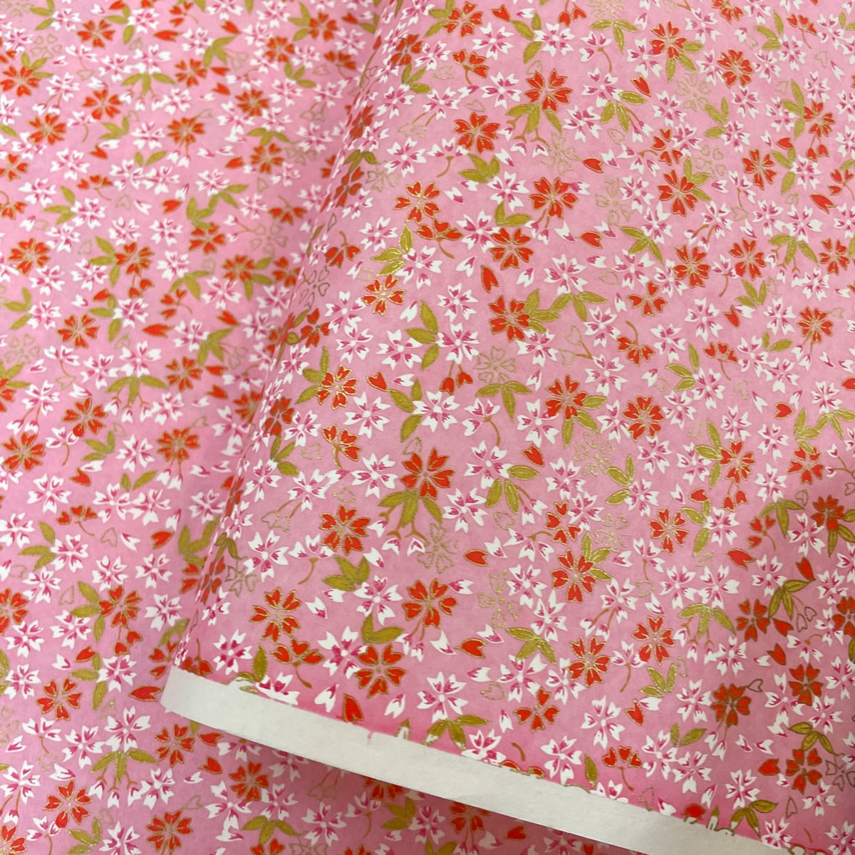 友禅紙 ピンク地に小花 桜 桃色 可愛い 大判 約63x95cm 千代紙 YUZEN dyeing