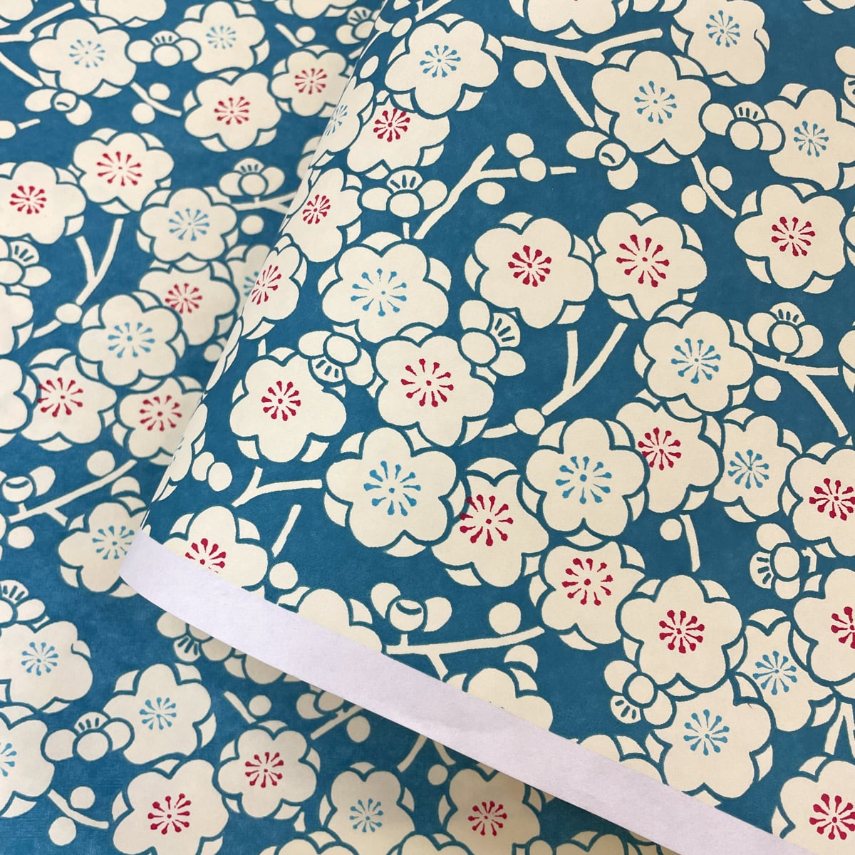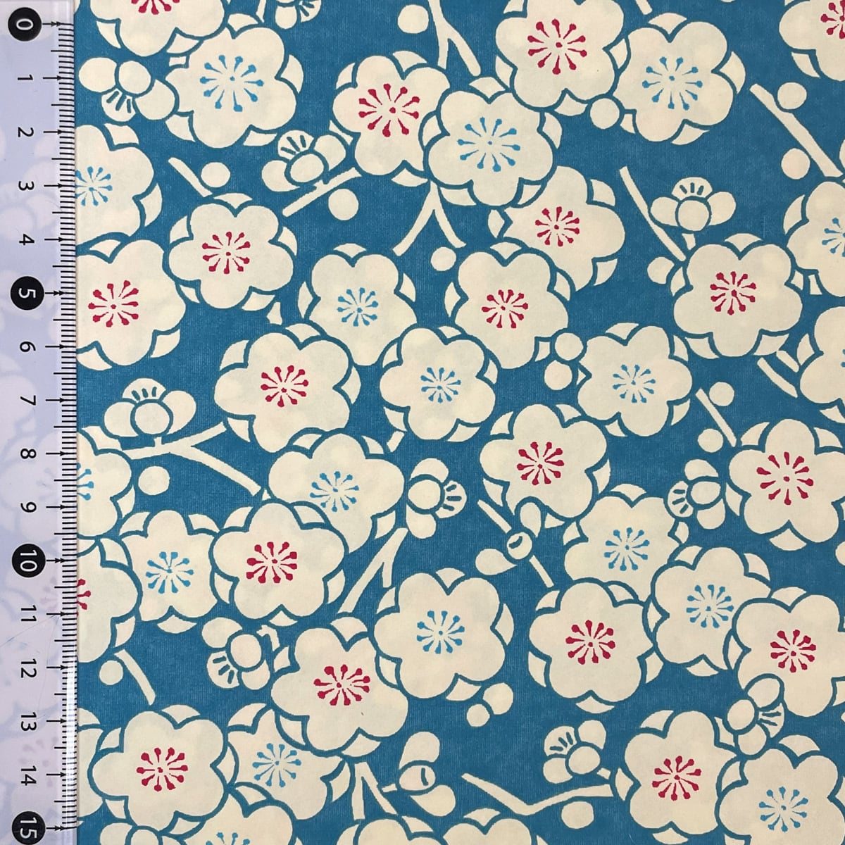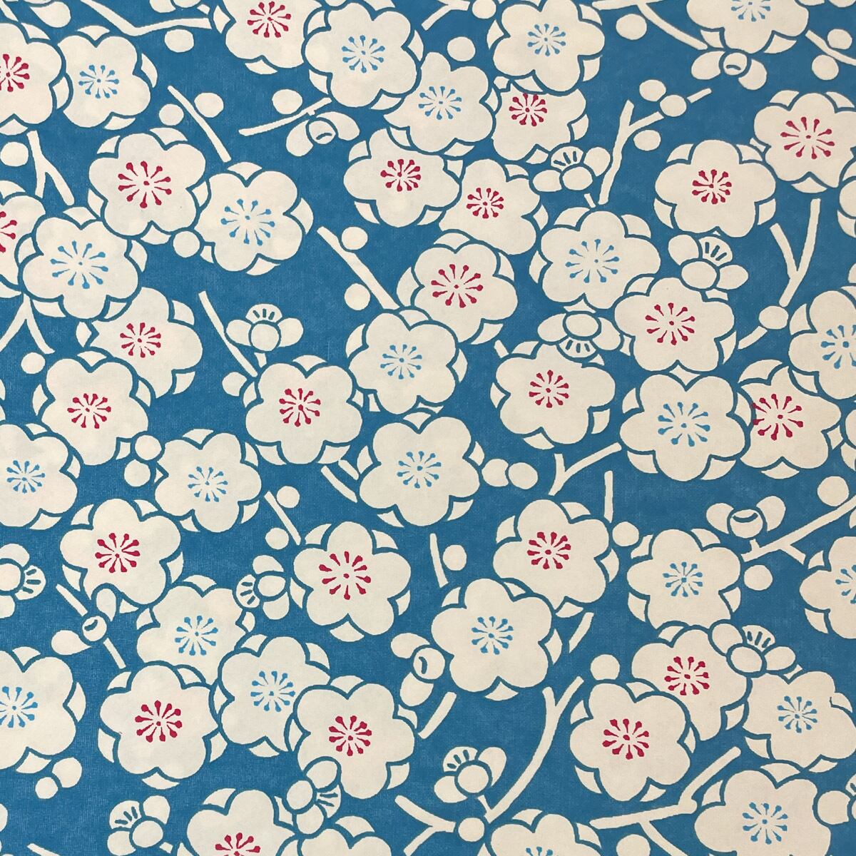 友禅和紙 青緑色地に白の梅 青 水色 白梅 大判 約63x95cm 千代紙 YUZEN dyeing