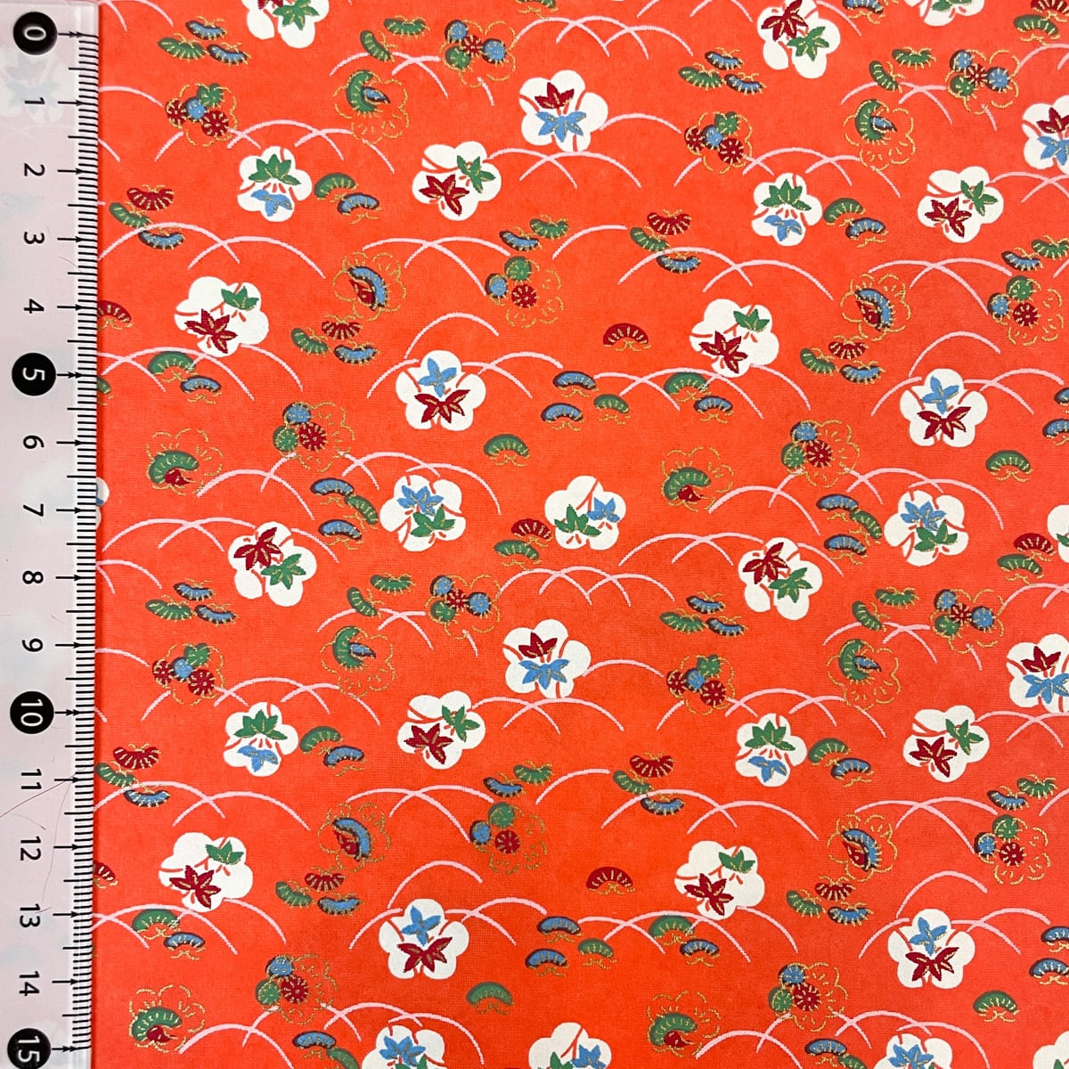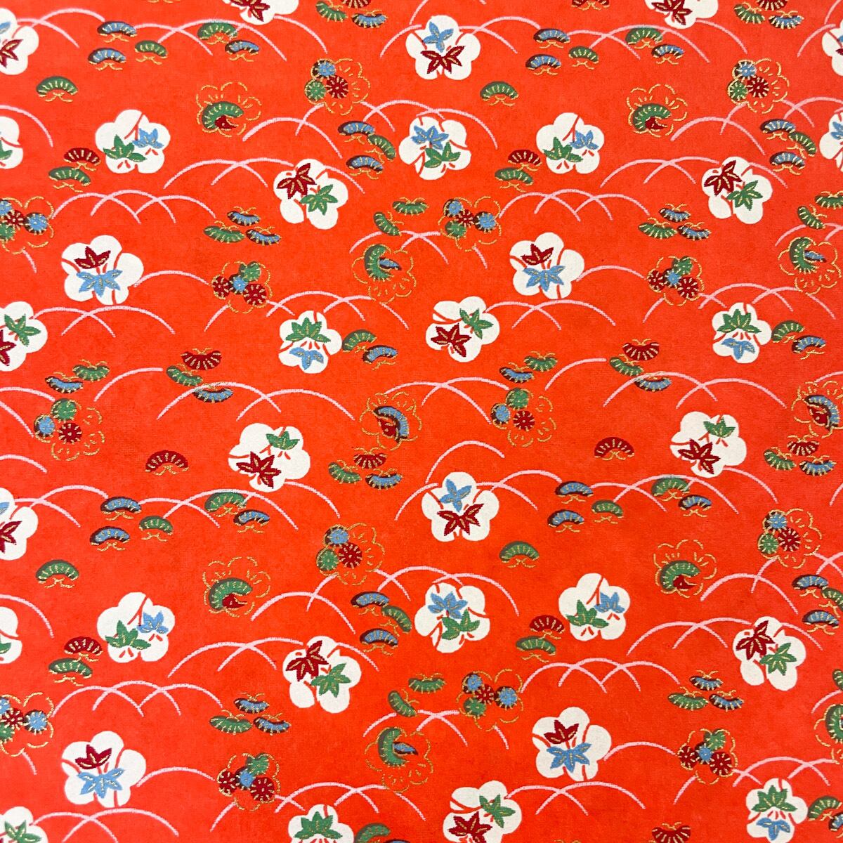 友禅紙 露芝にかわいい松竹梅 朱色 大判 約63x93cm 千代紙 YUZEN dyeing