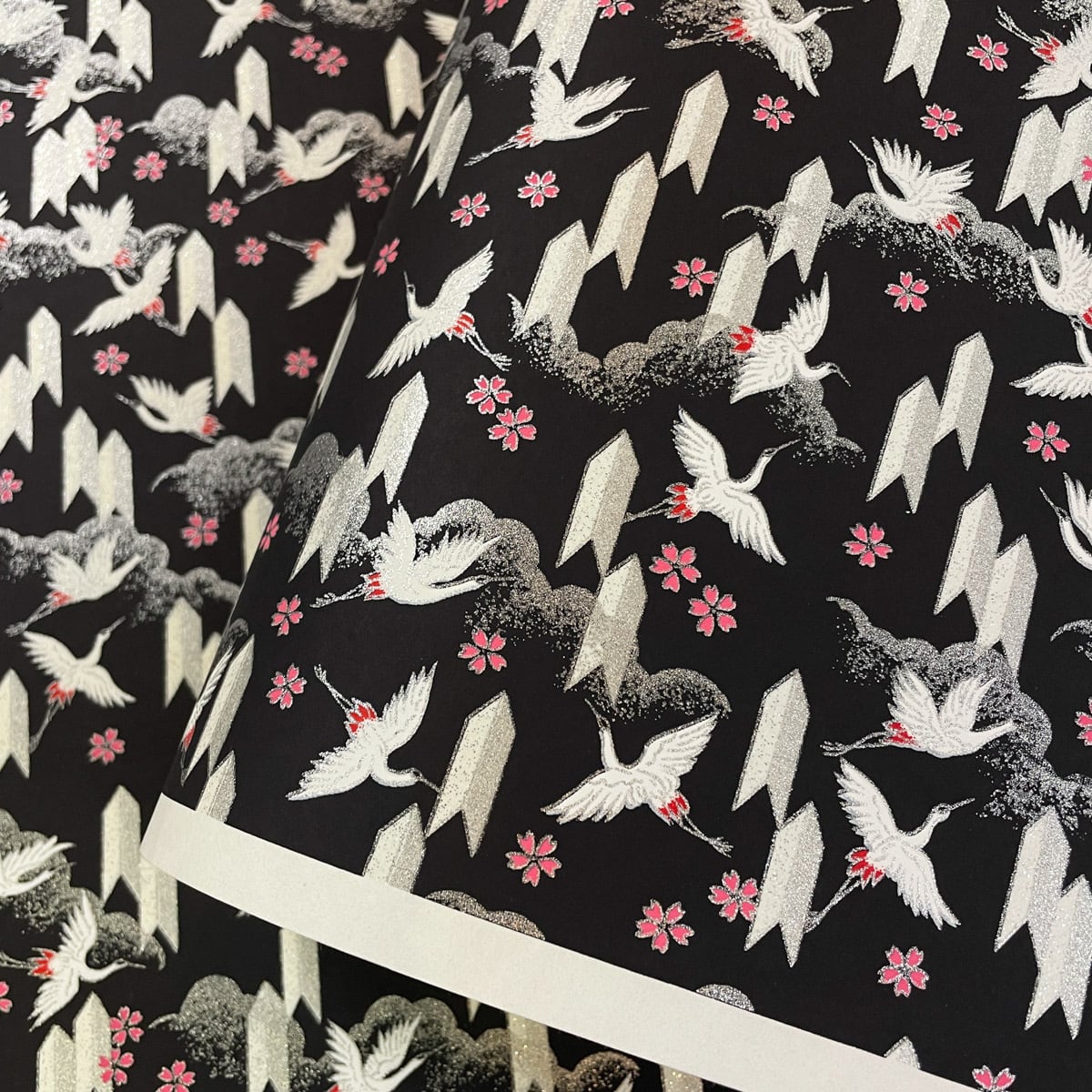 友禅和紙 黒地に鶴 金雲 銀の矢絣 桜 大判 約63x93cm 千代紙 YUZEN dyeing