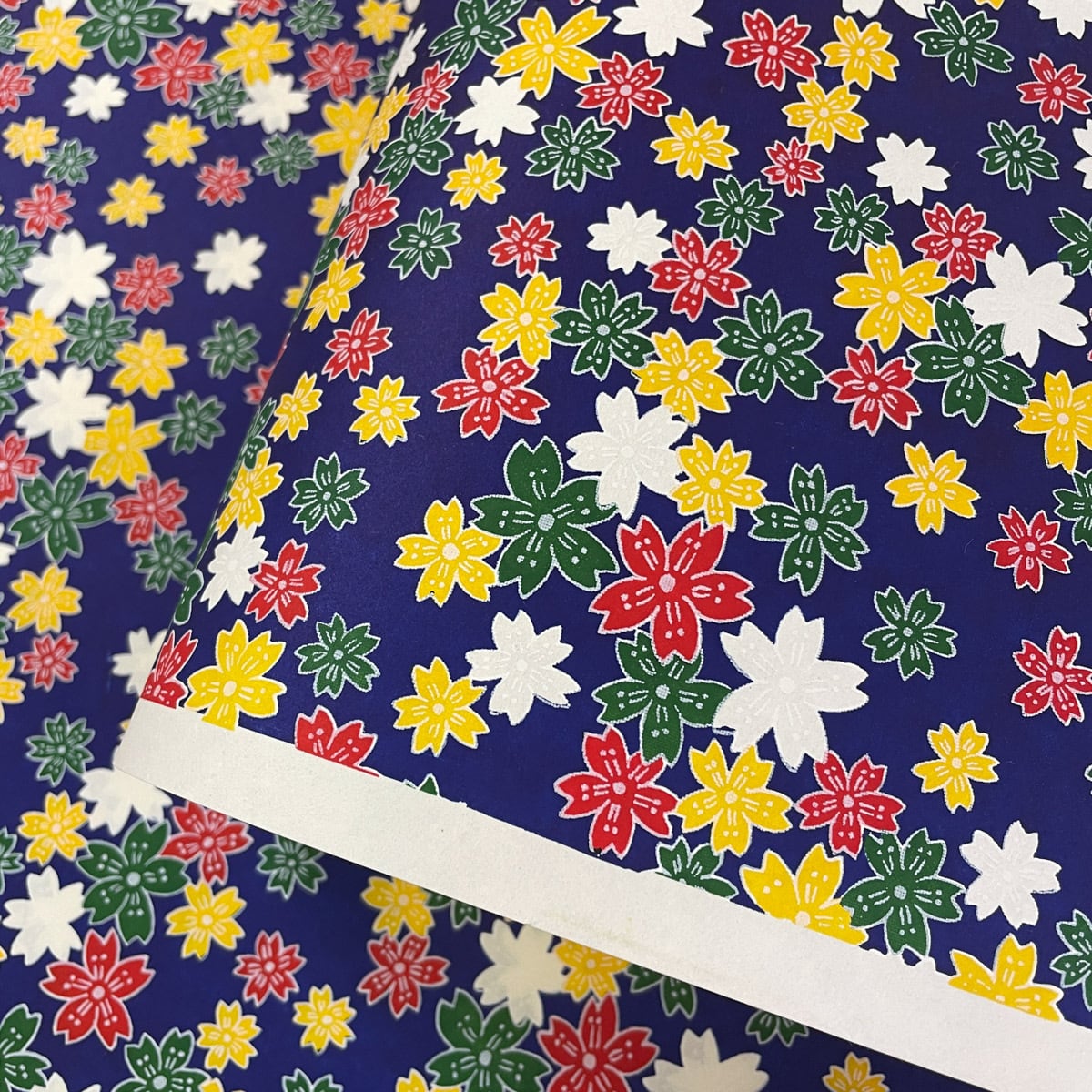 友禅和紙 可愛い桜 カラフル 紺 青 白の縁取り大判 約63x93cm 千代紙 YUZEN dyeing