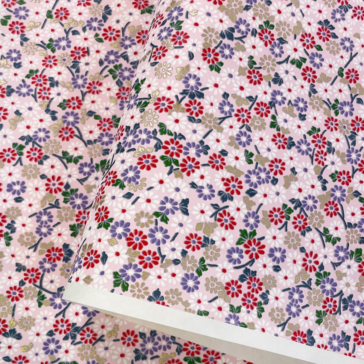友禅和紙 かわいい小花 小菊 ピンク 大判 約63x93cm 千代紙 YUZEN dyeing