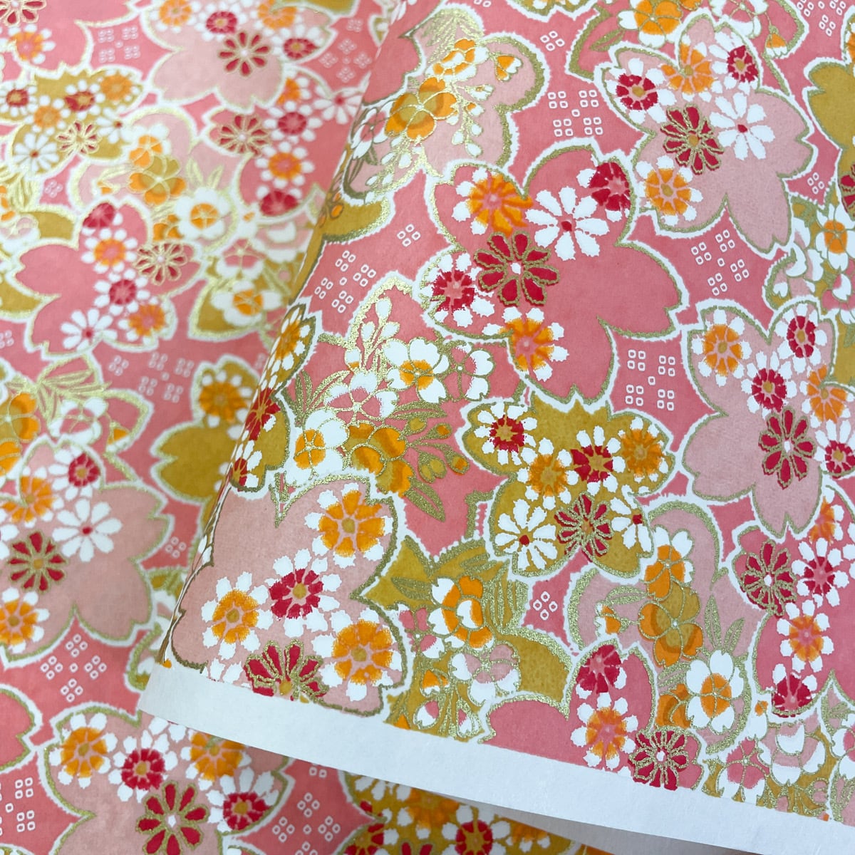 華やかな友禅紙 艶やか大きな桜柄と小花 桃色地 ピンク 大判 約63x95cm 千代紙 YUZEN dyeing