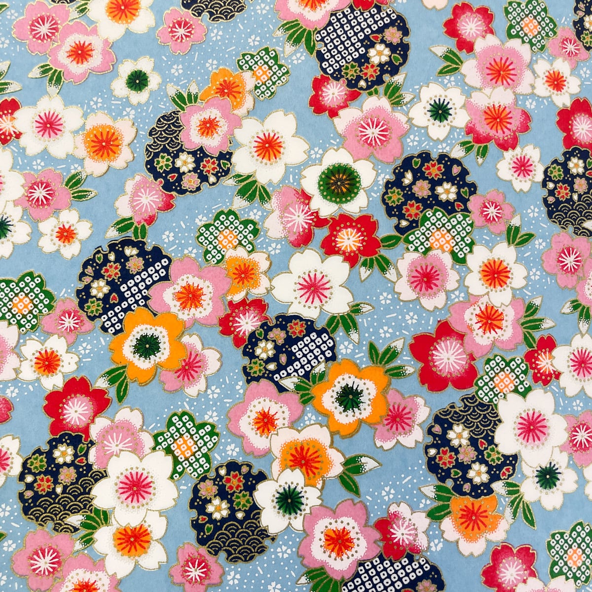 華やかな友禅紙 華やかな桜と雪輪紋 水色地 大判 約63x95cm 千代紙 YUZEN dyeing