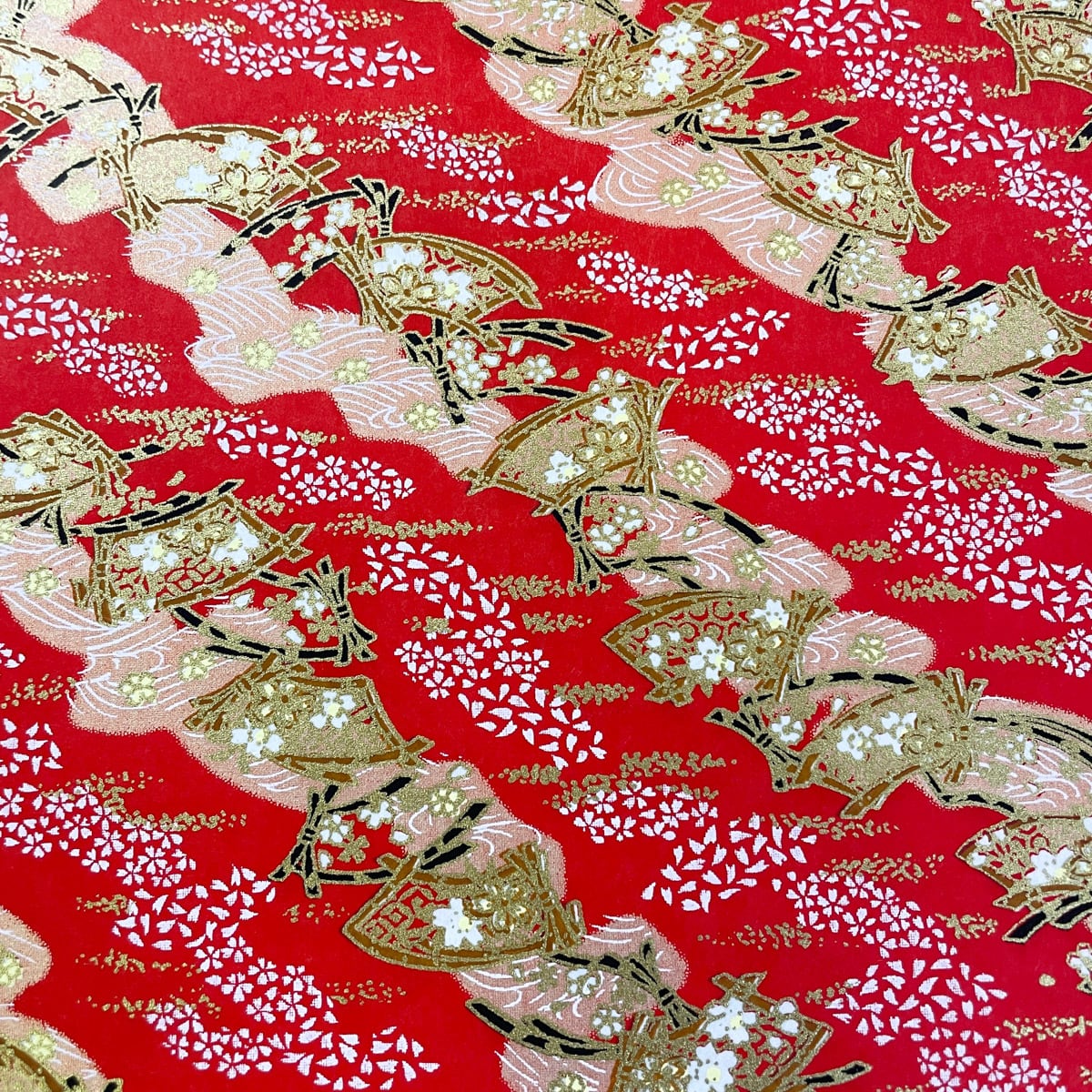 友禅和紙 赤地に扇を斜めに並べて 小桜 大判 約63x93cm 千代紙 YUZEN dyeing