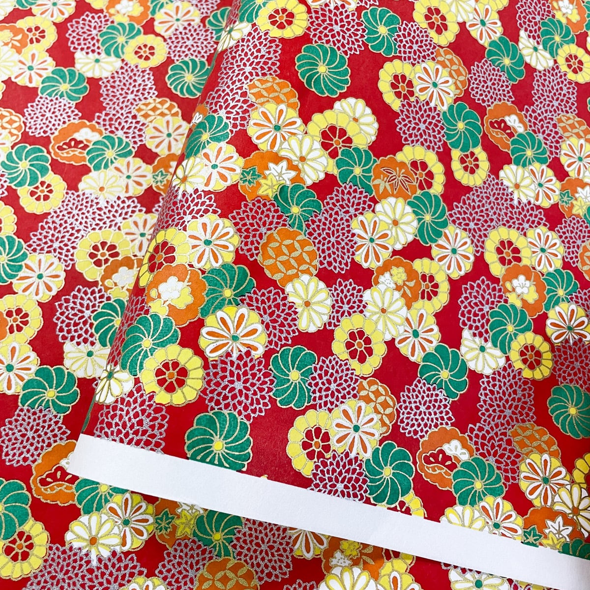 華やかな友禅和紙 赤地に菊づくし 大判 約63x93cm 千代紙 YUZEN dyeing
