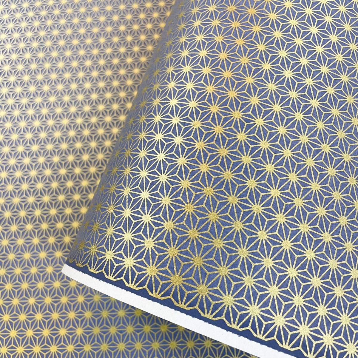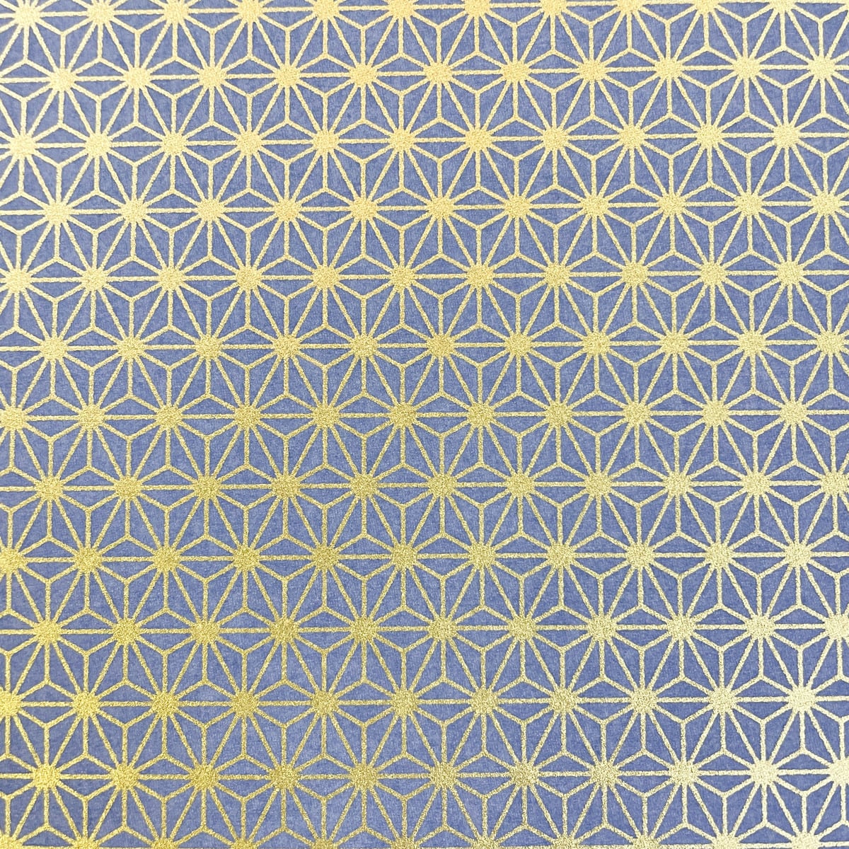 金色が華やかな加賀友禅 和紙 グレー地に金の麻の葉柄 大判 約63x93cm KAGA YUZEN Dyeing