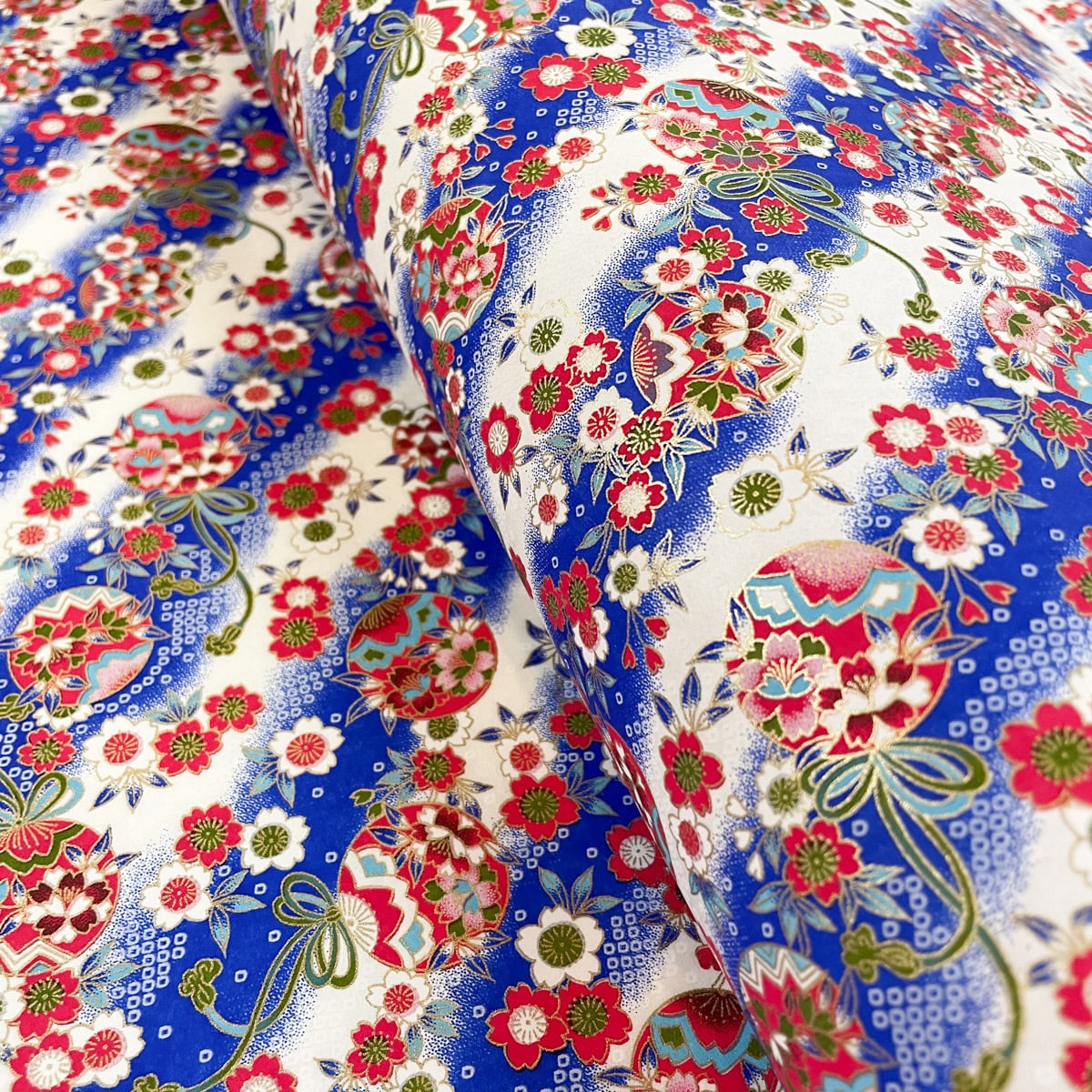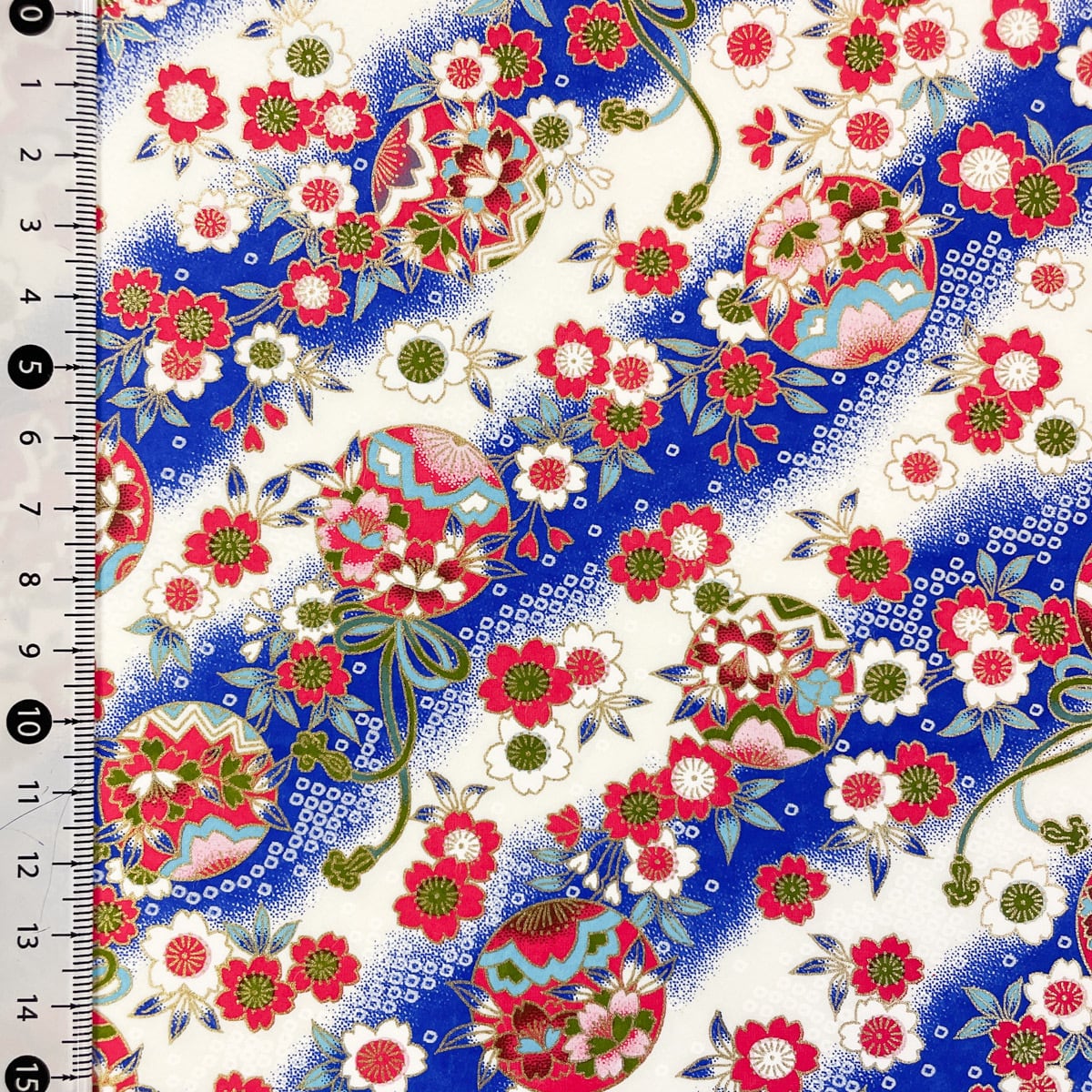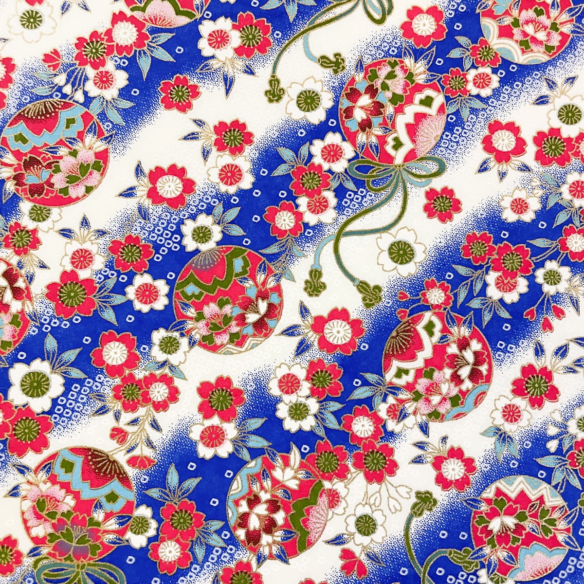 友禅和紙 華やか毬と桜 青と白のぼかし 大判 約63x93cm 千代紙 Yuzen dyeing