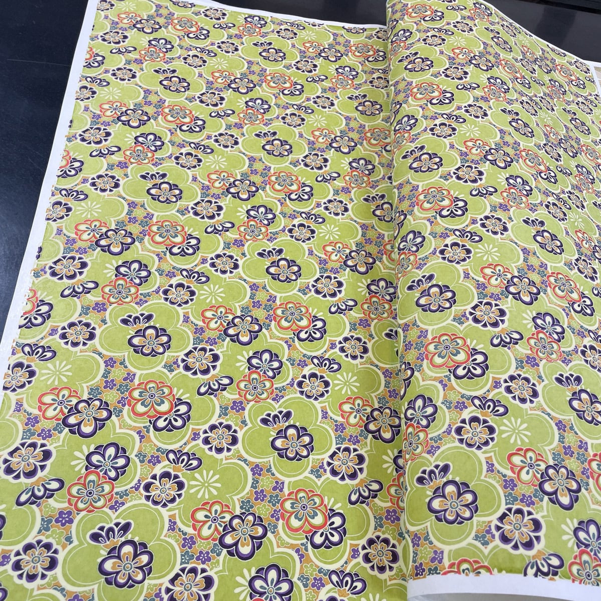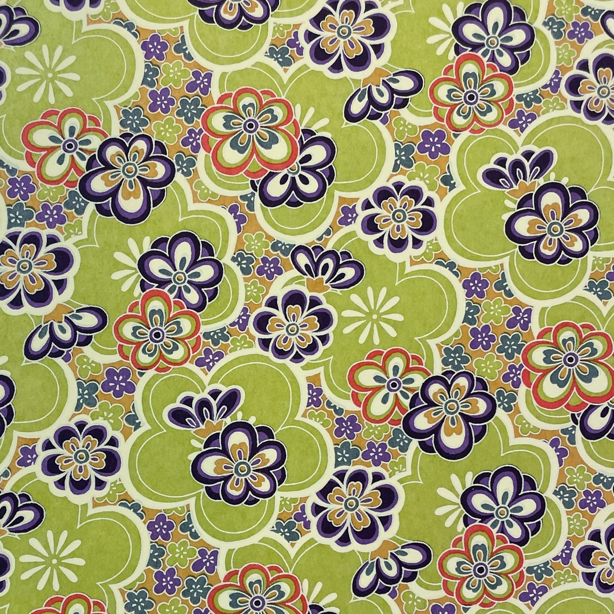 華やかな友禅和紙 黄緑色の大きな梅に くすみカラーの梅 大正ロマン 大判 約63x93cm 千代紙 YUZEN dyeing