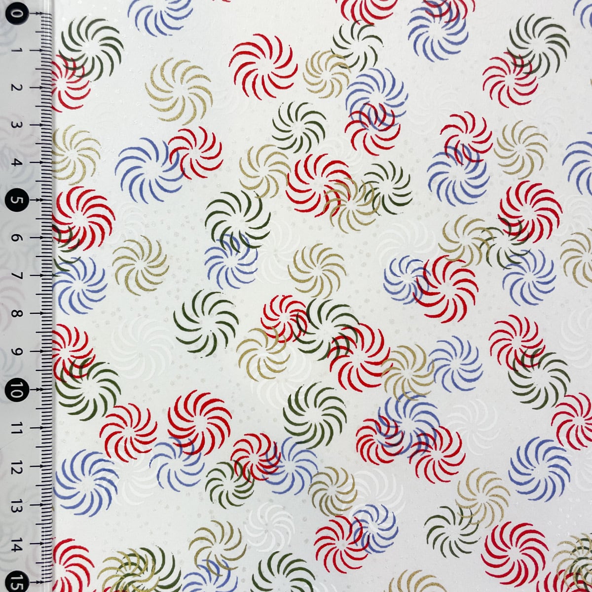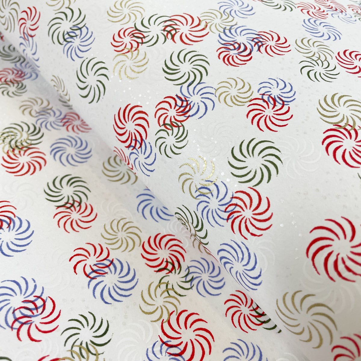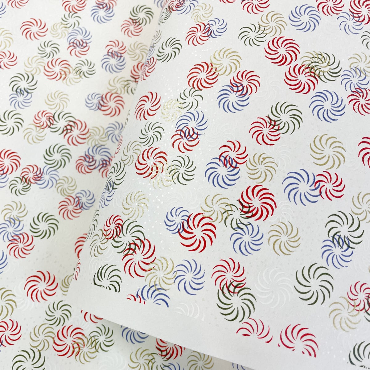 友禅和紙 白地に赤 青 金の獅子毛模様 さわやか 大判 約63x93cm 千代紙 YUZEN dyeing