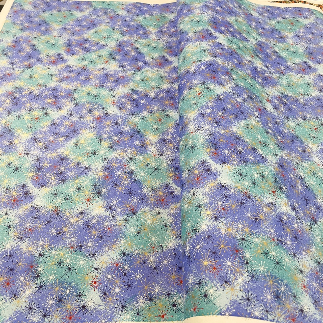 友禅和紙 夜空に花火 線香花火 青 水色 大判 約63x93cm 千代紙 YUZEN dyeing