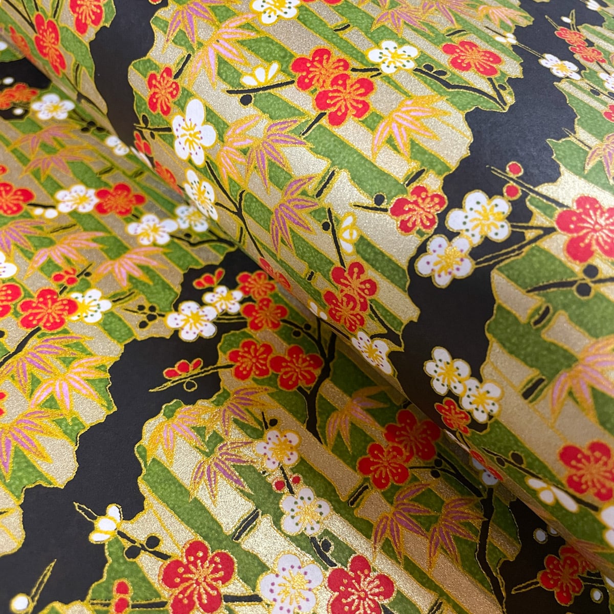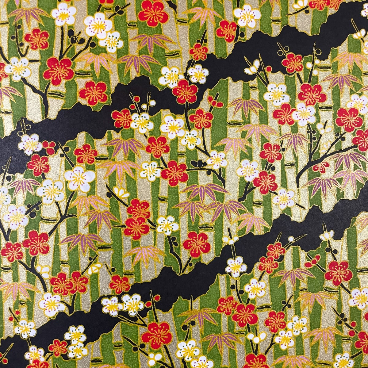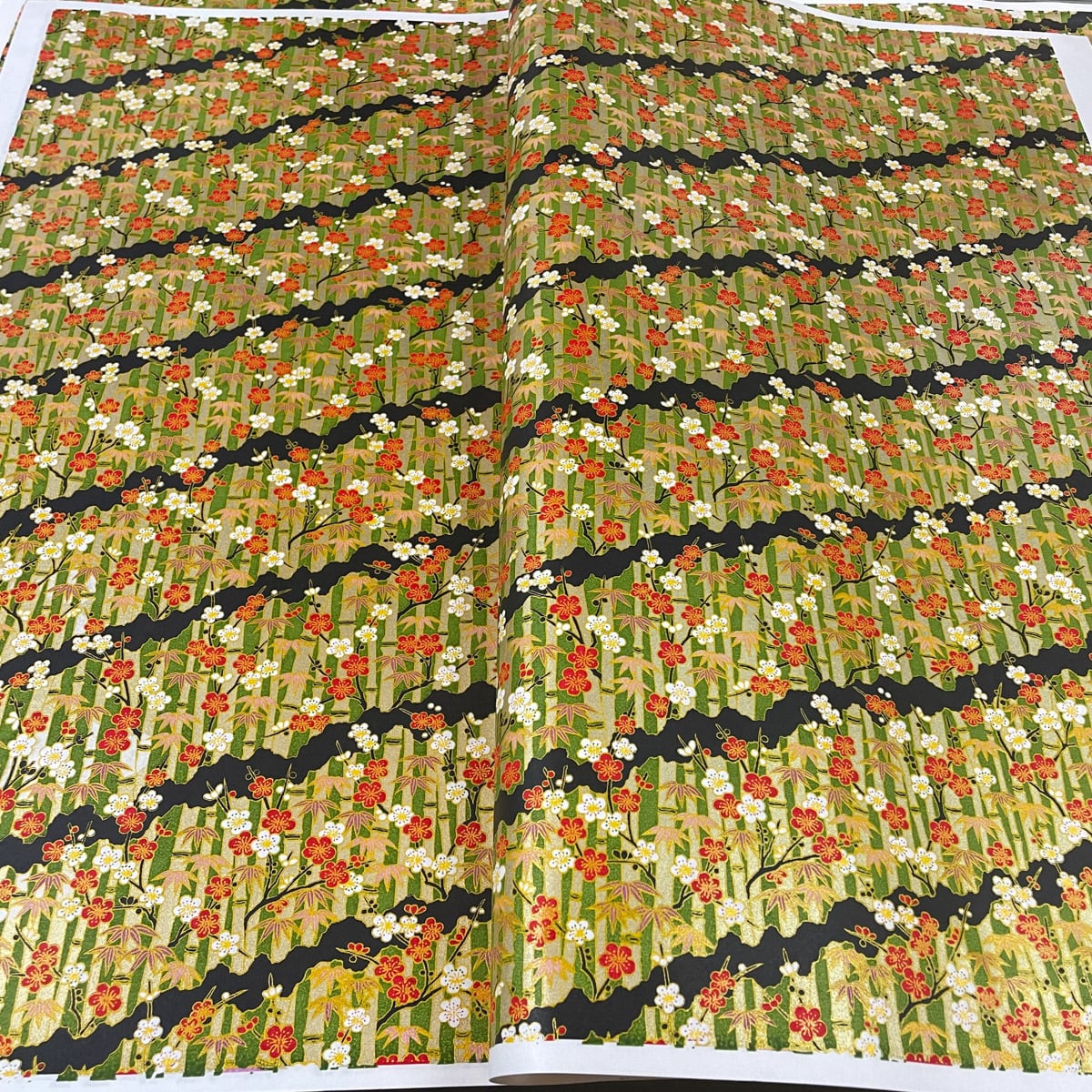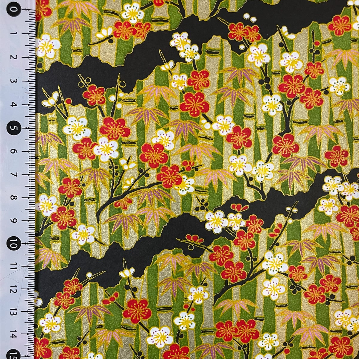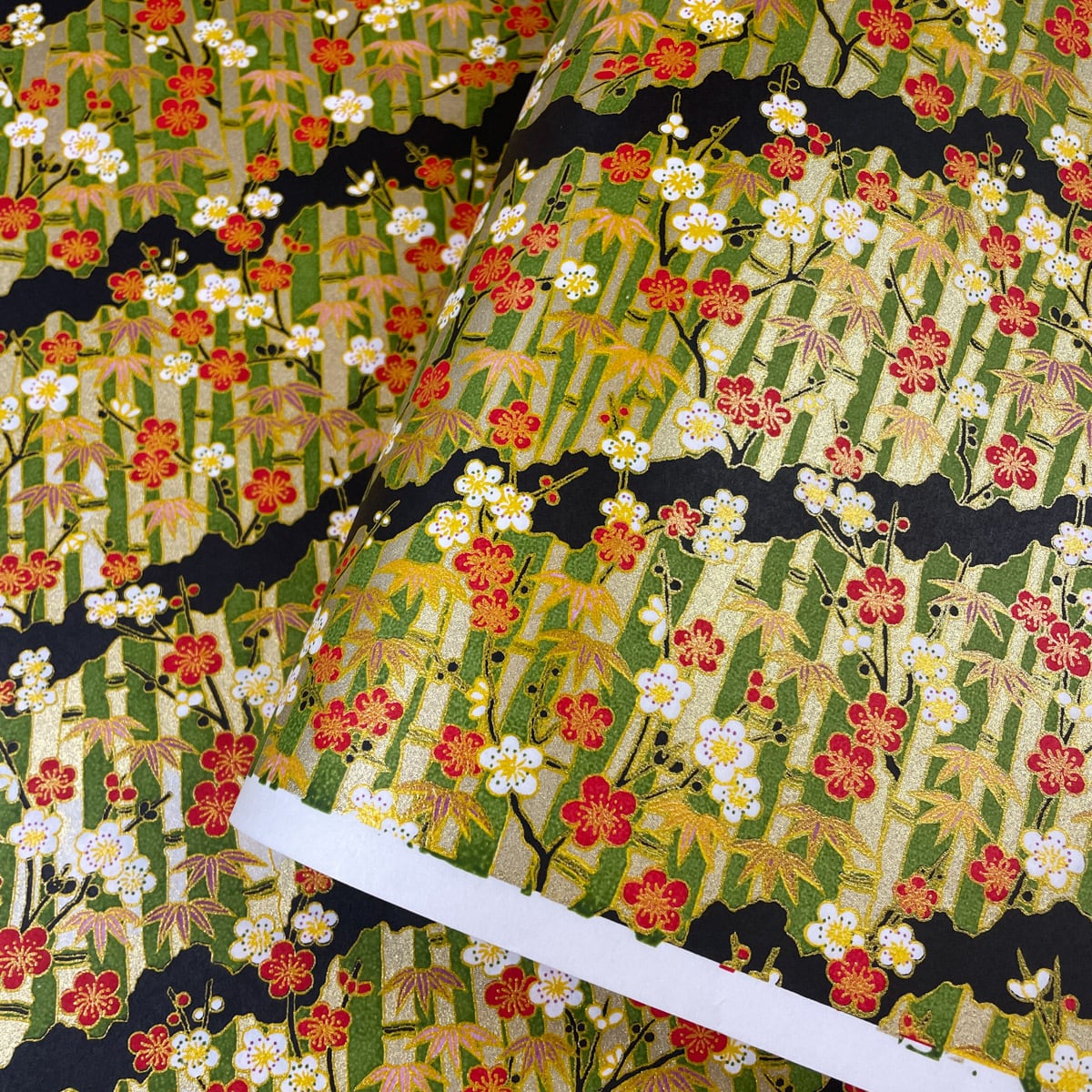 友禅和紙 豪華金地 竹林に紅白梅 大判 約63x95cm 千代紙 YUZEN dyeing
