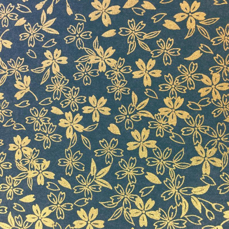 金色が華やかな加賀友禅 和紙 桜 青緑 大判 約63x93cm