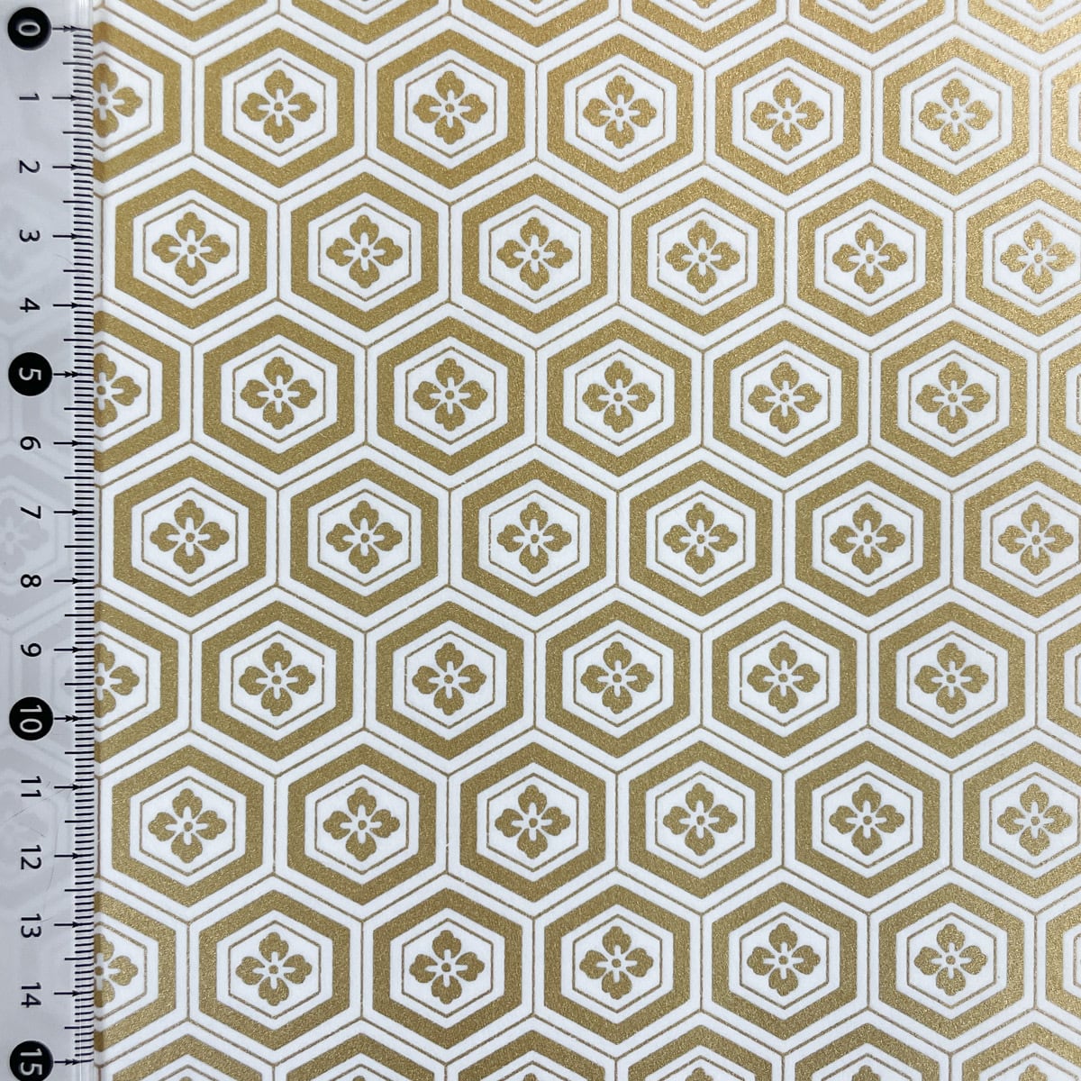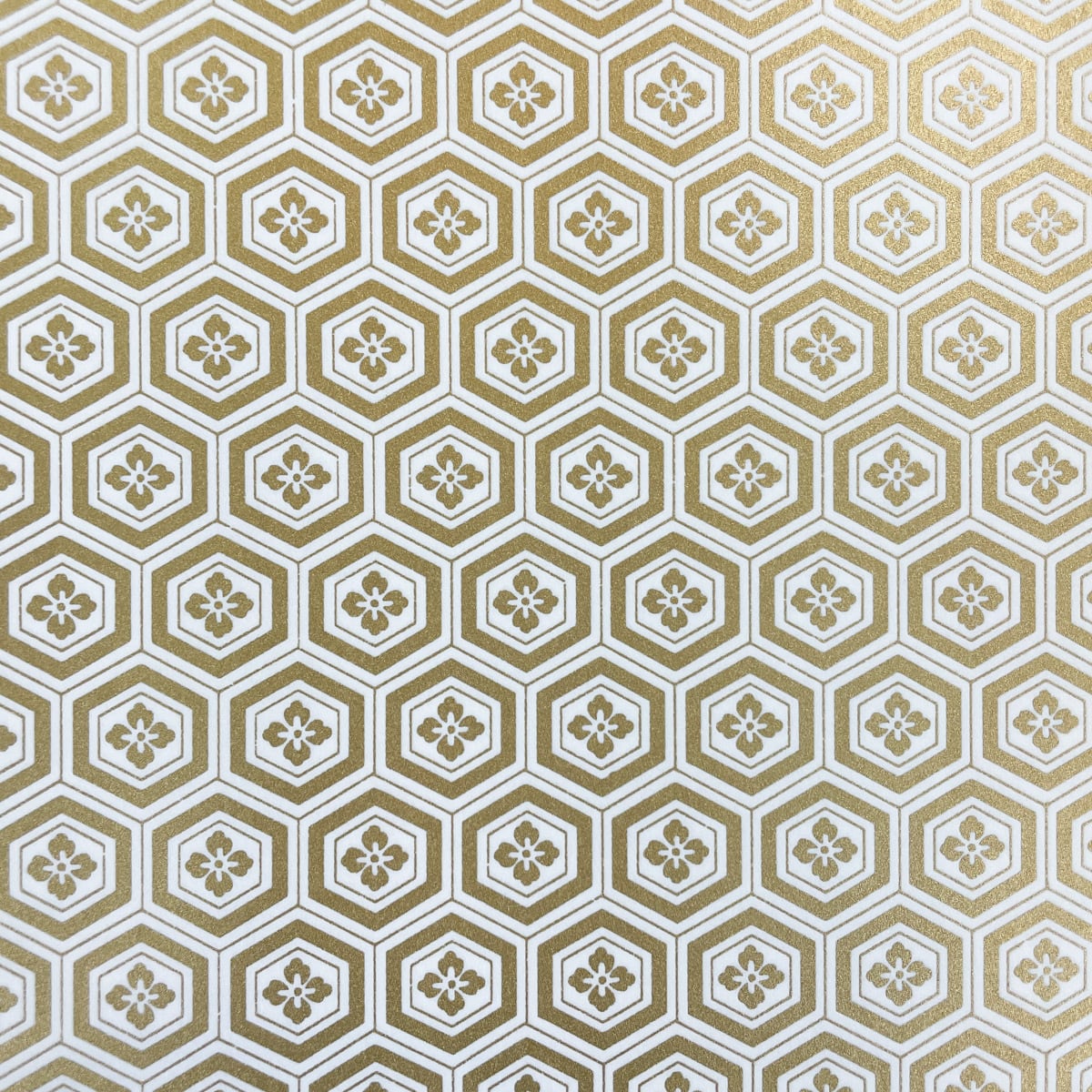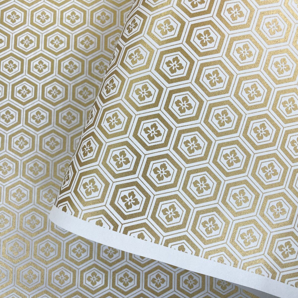 金色が華やかな加賀友禅 和紙 亀甲花菱 白 大判 約63x93cm 千代紙 KAGA YUZEN Dyeing