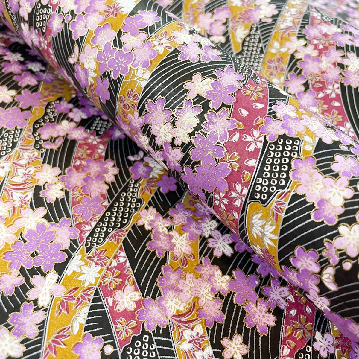 友禅和紙 華やか 黒の青海波に短冊と桜 大判 約63x93cm 千代紙 Yuzen dyeing 119087794