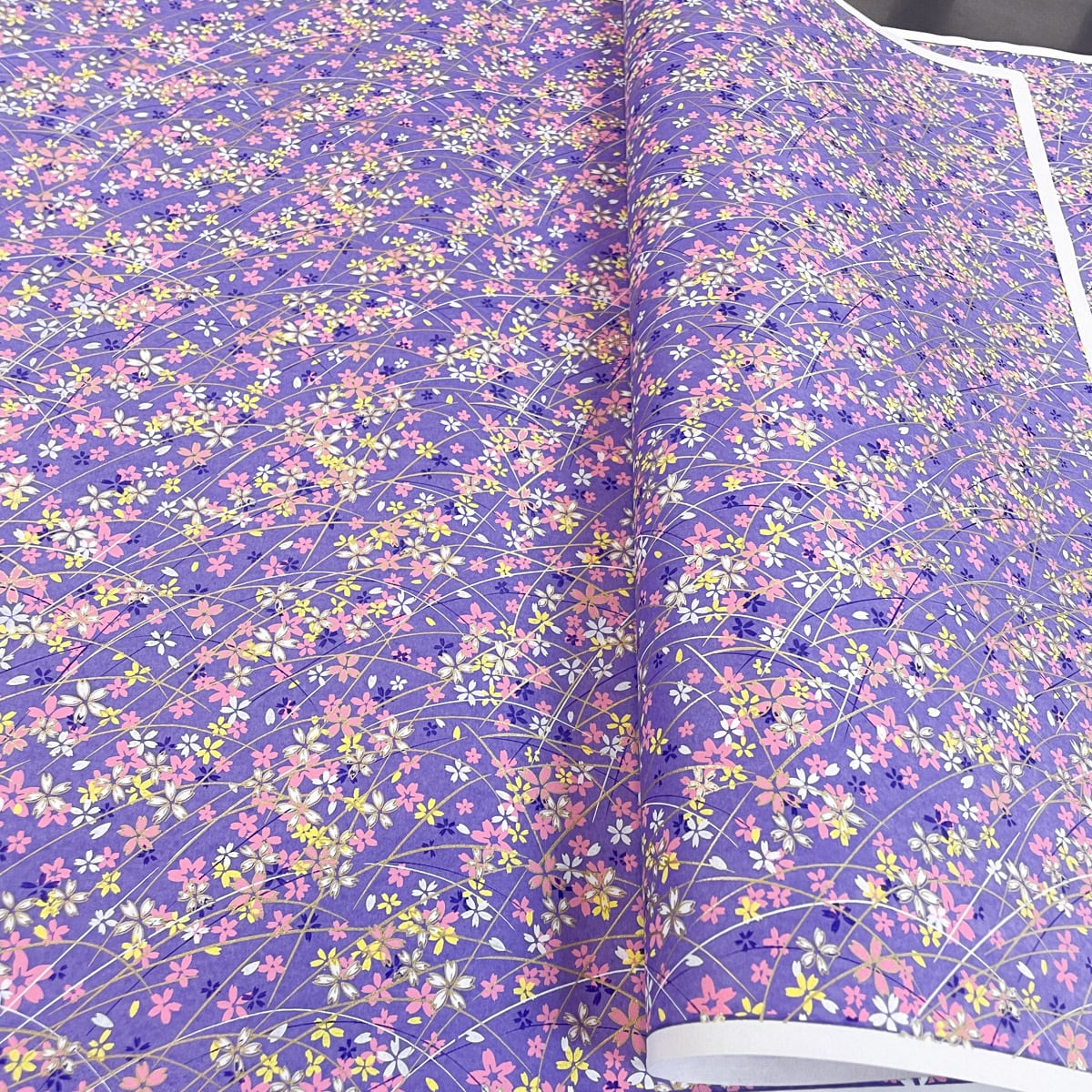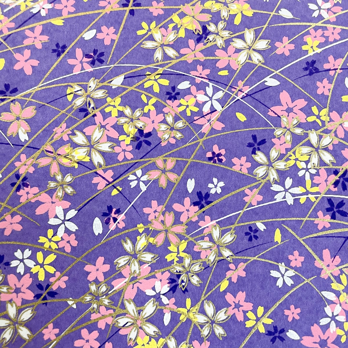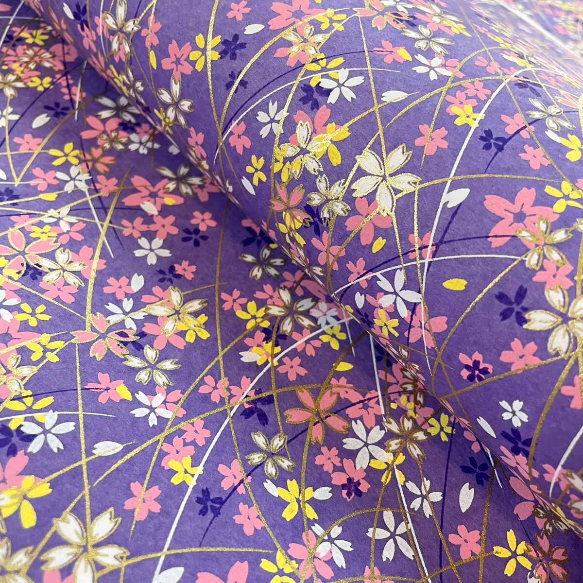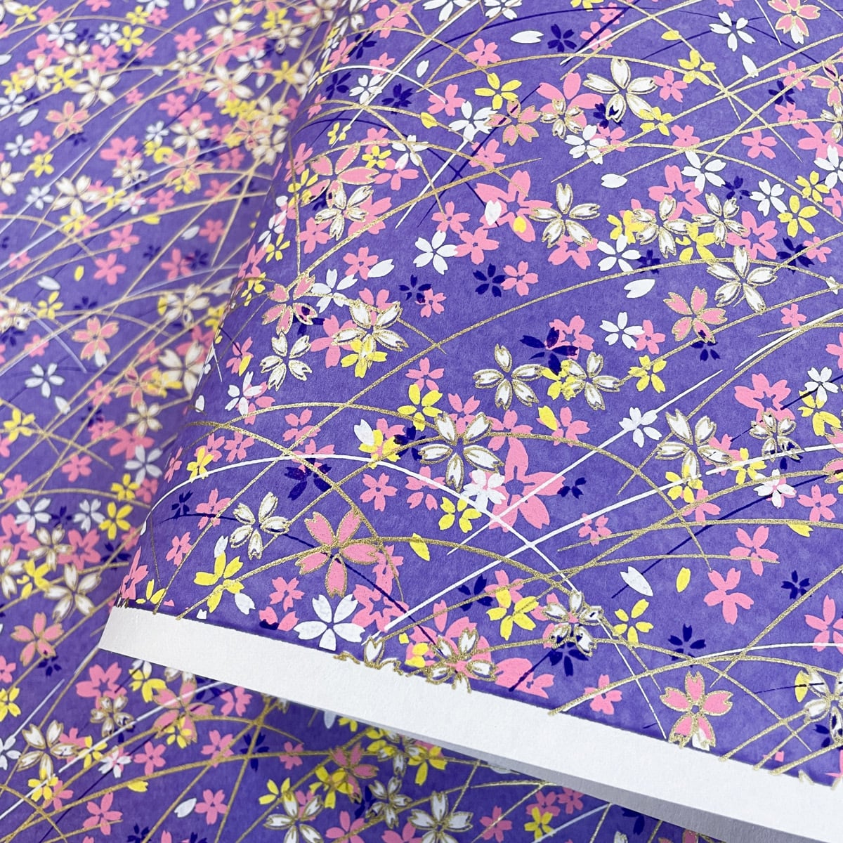 友禅和紙 華やか 紫色地に桜ちらし 金の露芝 大判 約 63x95cm 千代紙 YUZEN dyeing