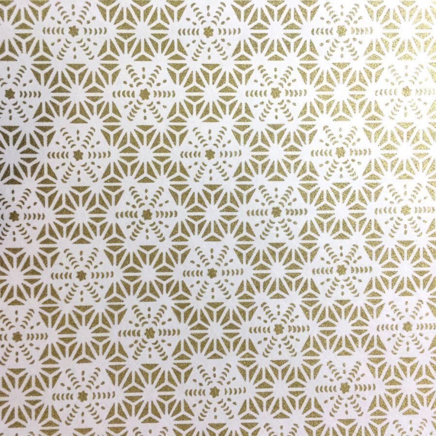 着物の紋様や柄を色無地に金でプリントした和紙です。