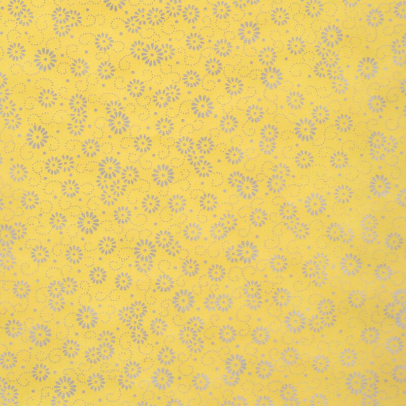 こちらは黄色地にシルバーの小菊唐草柄がプリントされています。