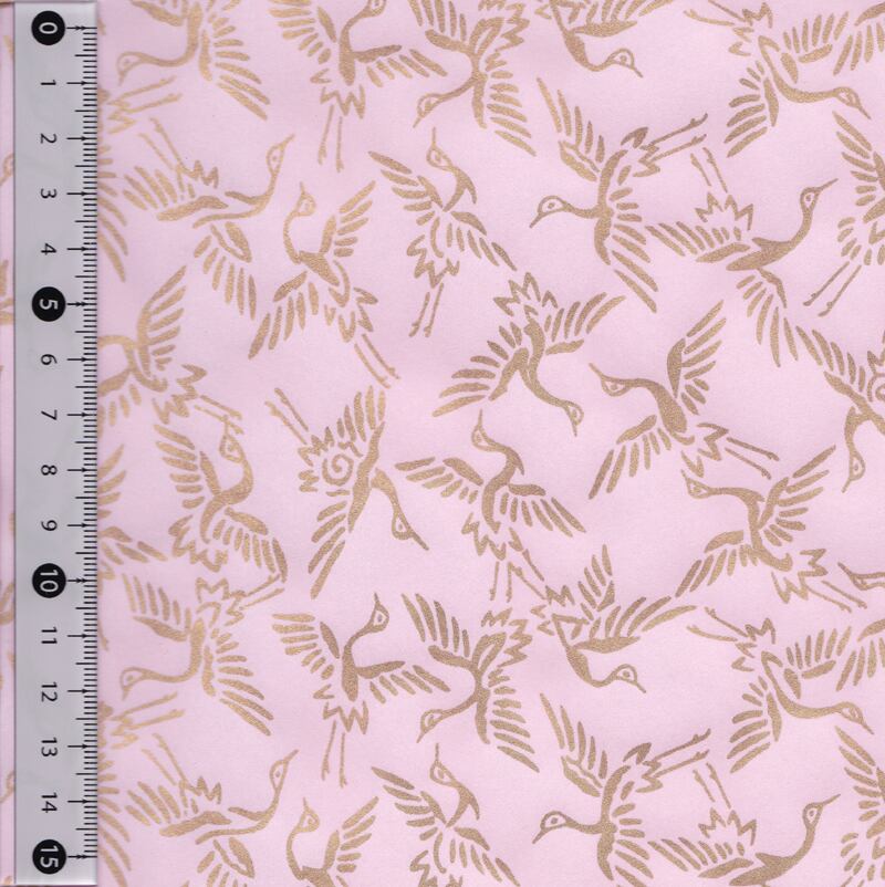 こちらはピンク地にゴールドの鶴がプリントされています。