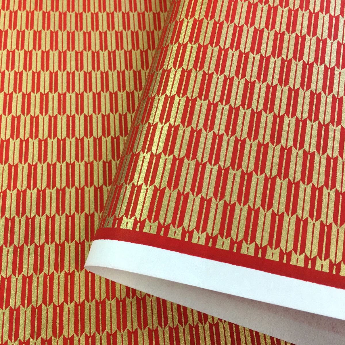 着物の紋様や柄を色無地に金でプリントした和紙です。