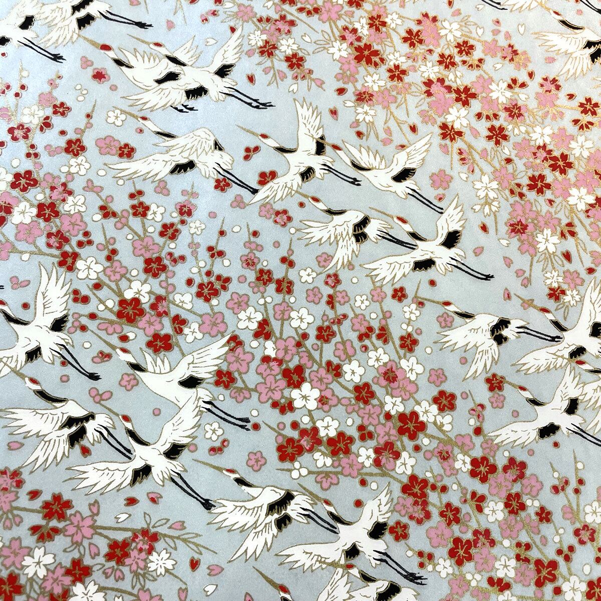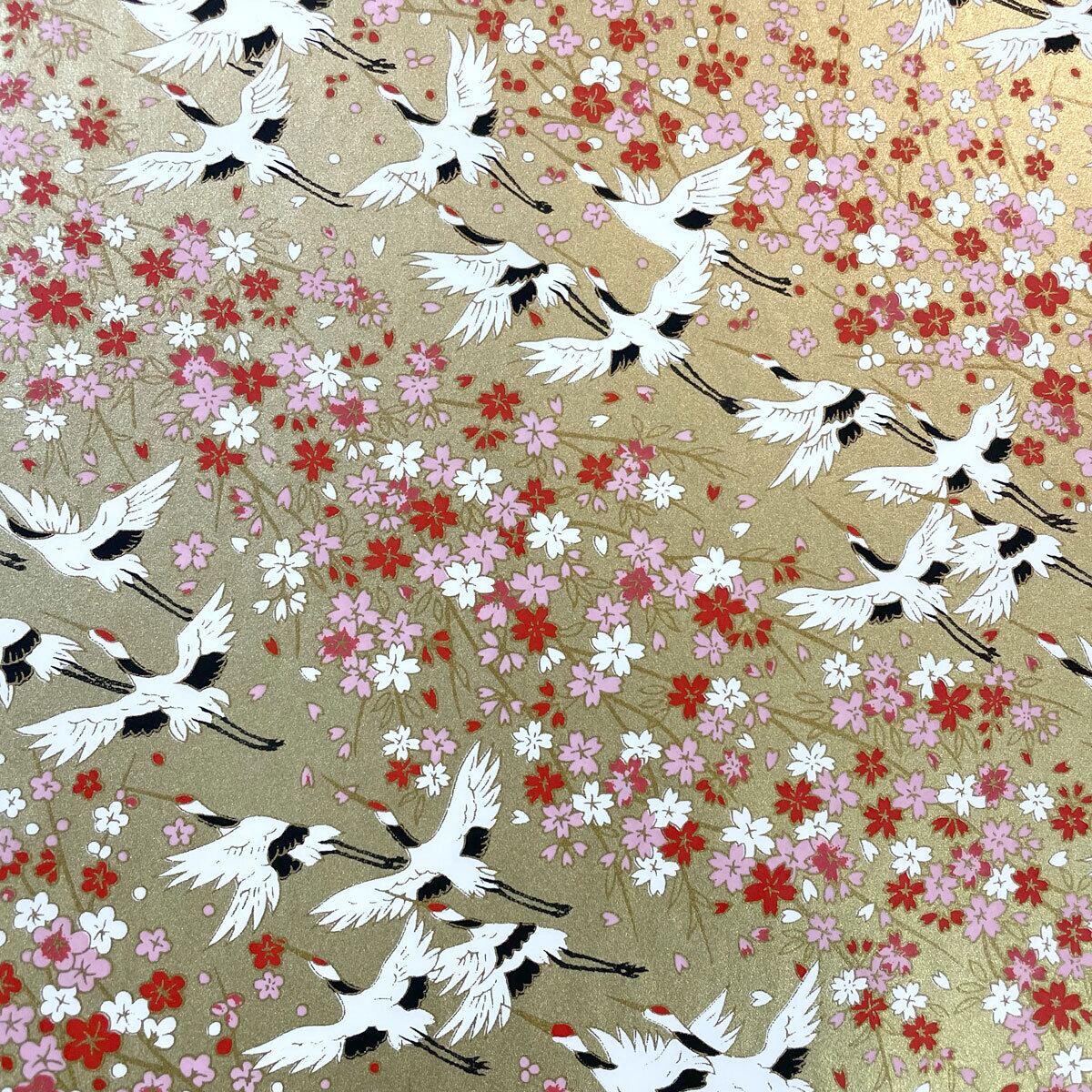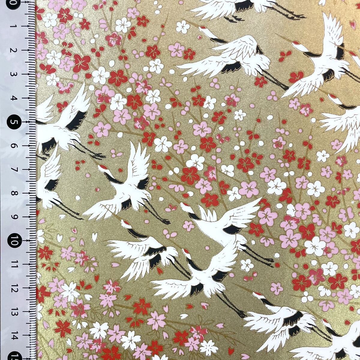 華やかな友禅紙 YUZEN dyeing 豪華 鶴と桃 黒 赤 金 銀 約63x95㎝