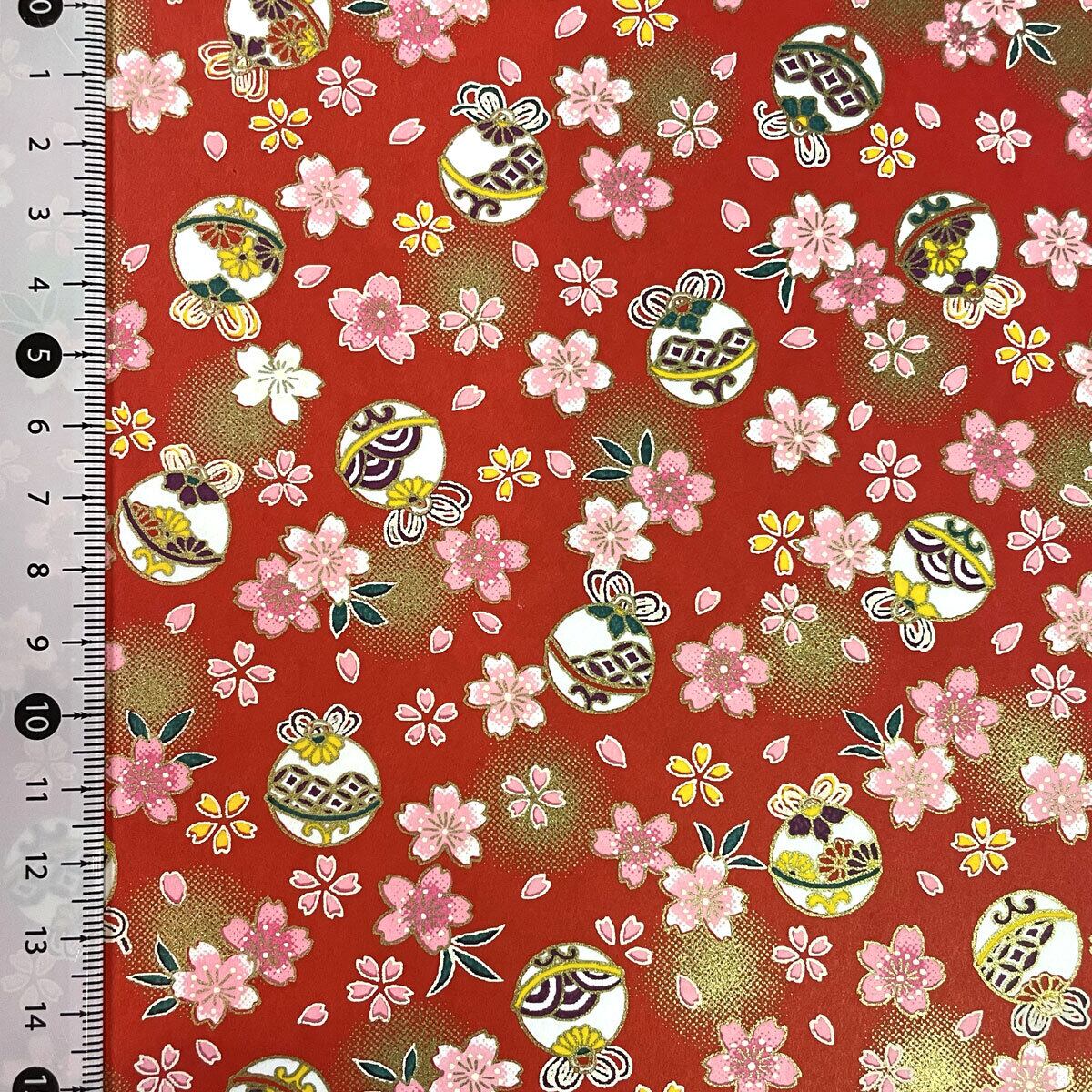 華やかな友禅紙 YUZEN dyeing 可愛い 鈴と桜 赤 金雲 折り紙、連鶴、クラフトに 約63x95㎝