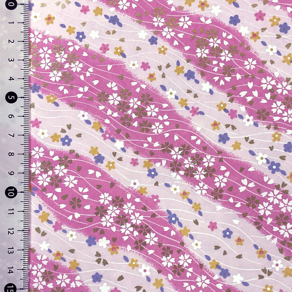 華やかな友禅紙 YUZEN dyeing 可愛い桃色 黄緑 小桜 小花 約63x95㎝
