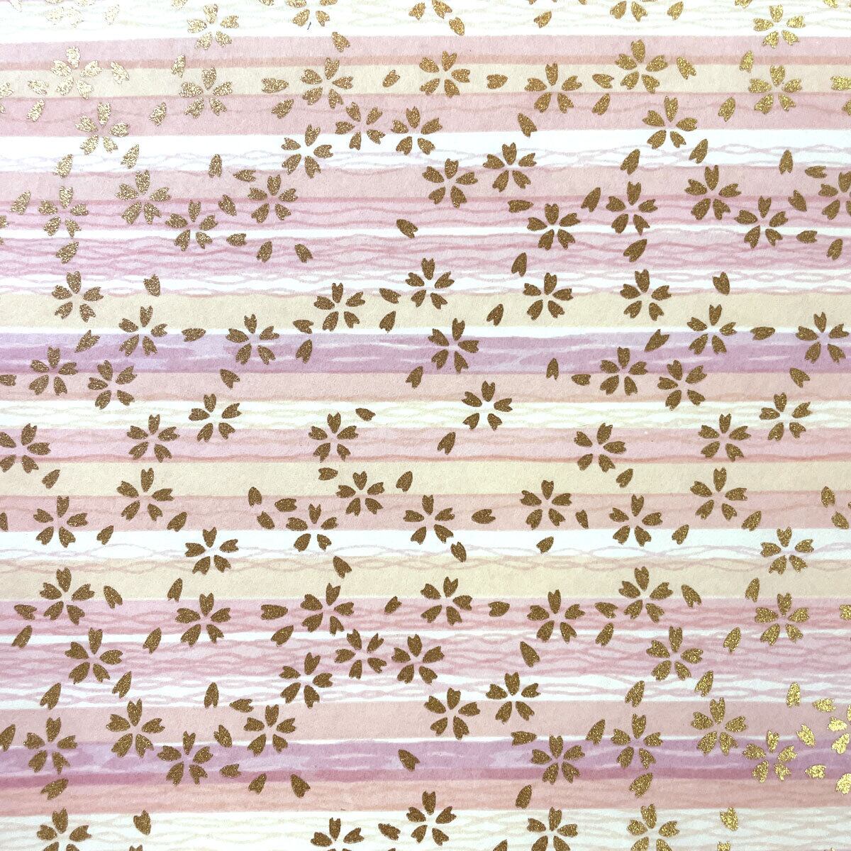 華やかな友禅紙 さわやか 桃色 藤色 白の縞 金の桜ちらし 大判 約63x95㎝ Yuzen Dyeing 千代紙