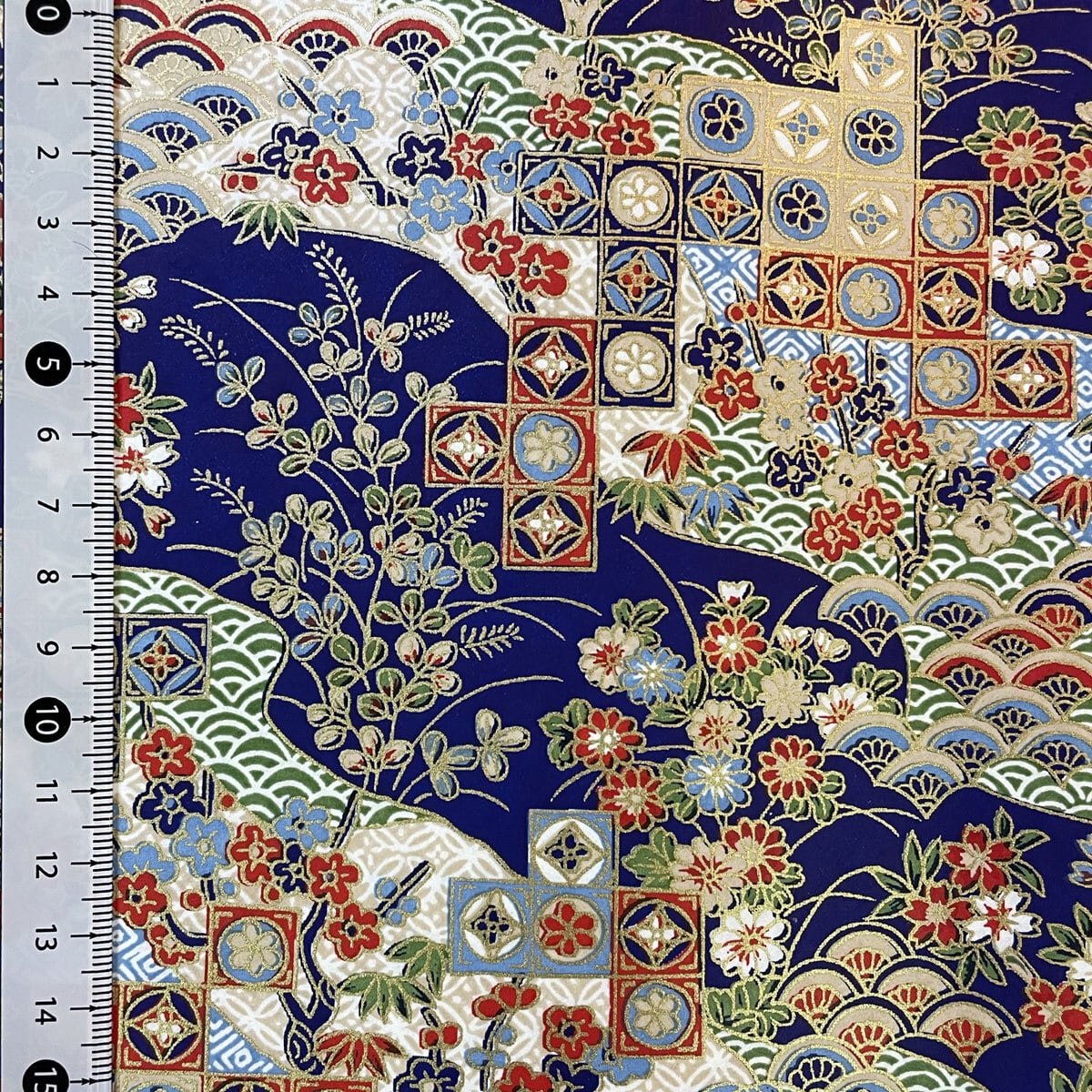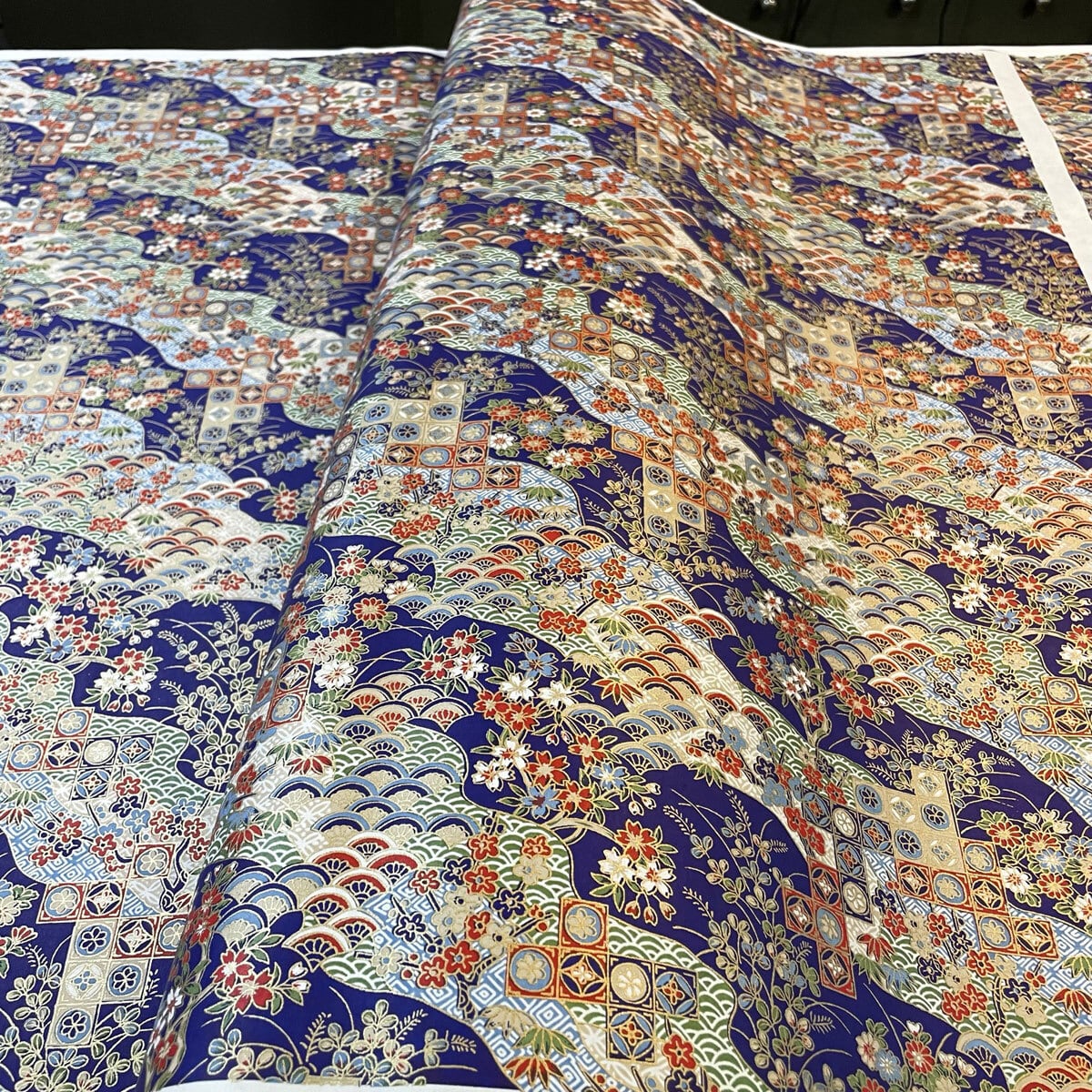 華やかな友禅紙 古典柄 青海波に桜 萩 梅 菊 青 大判 約63x93cm YUZEN dyeing 49781106