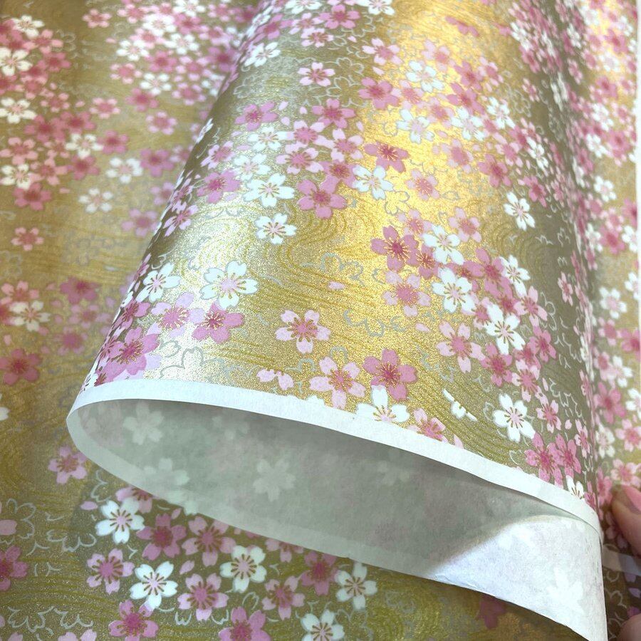 華やかな華やかな友禅紙 YUZEN dyeing 金色地に桜 ゴールド ピンクの桜 大判 約63x95㎝ 千代紙 51376759