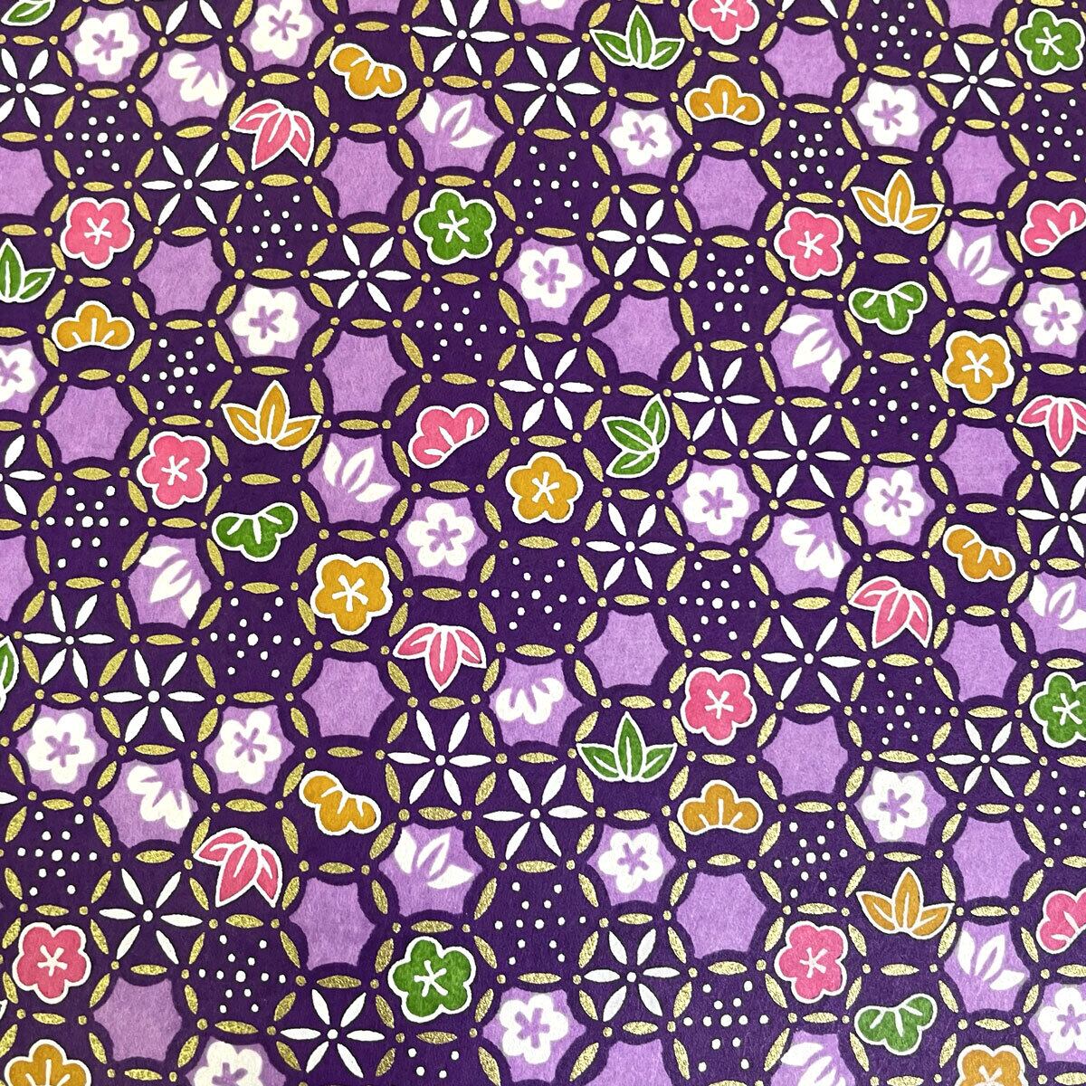 華やかな友禅紙 YUZEN dyeing 友禅和紙 かわいい松竹梅 紫地 大判 菊判 約63x93cm 53243182