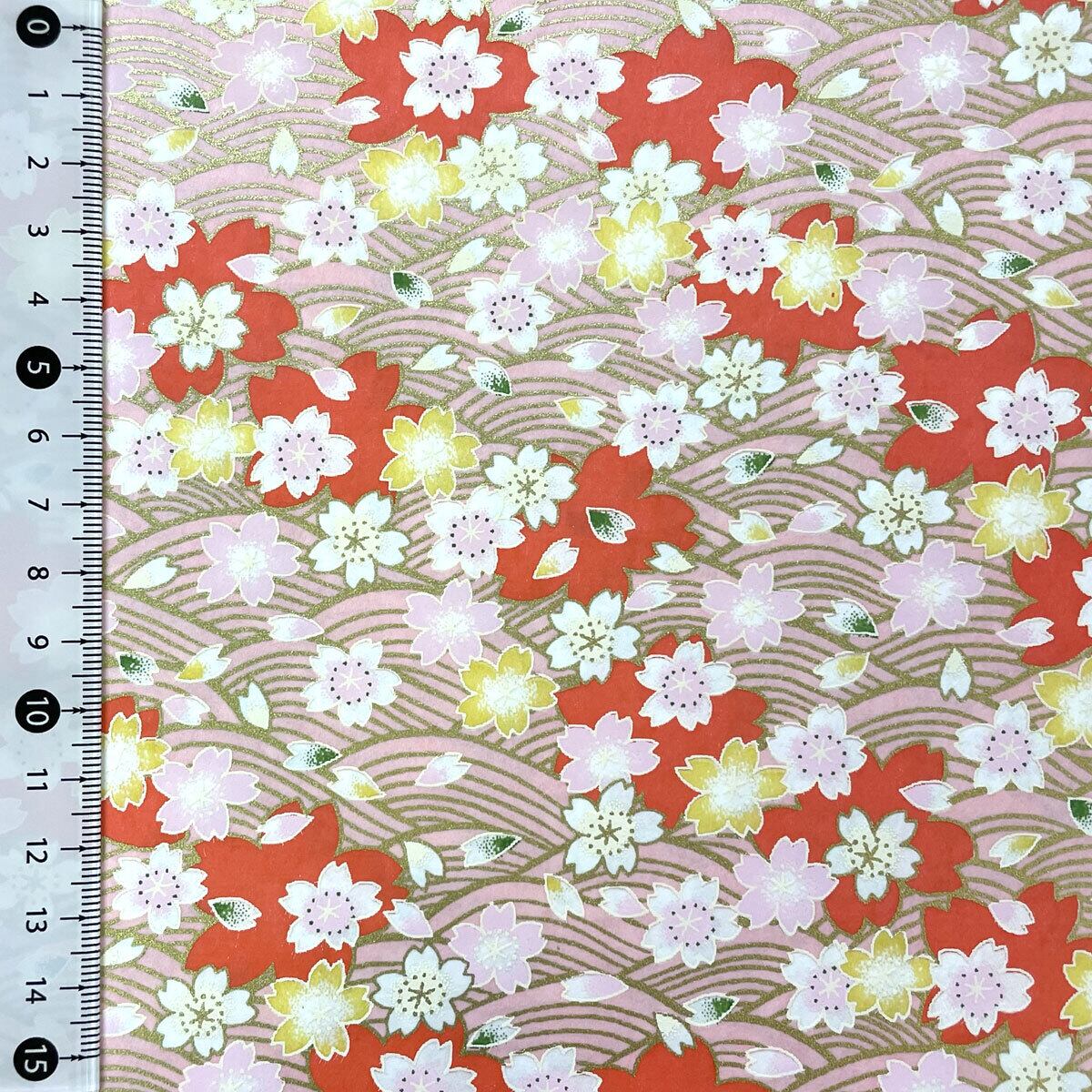 華やかな友禅紙 YUZEN dyeing 可愛い波と桜 ピンク 桃色 約63x95㎝