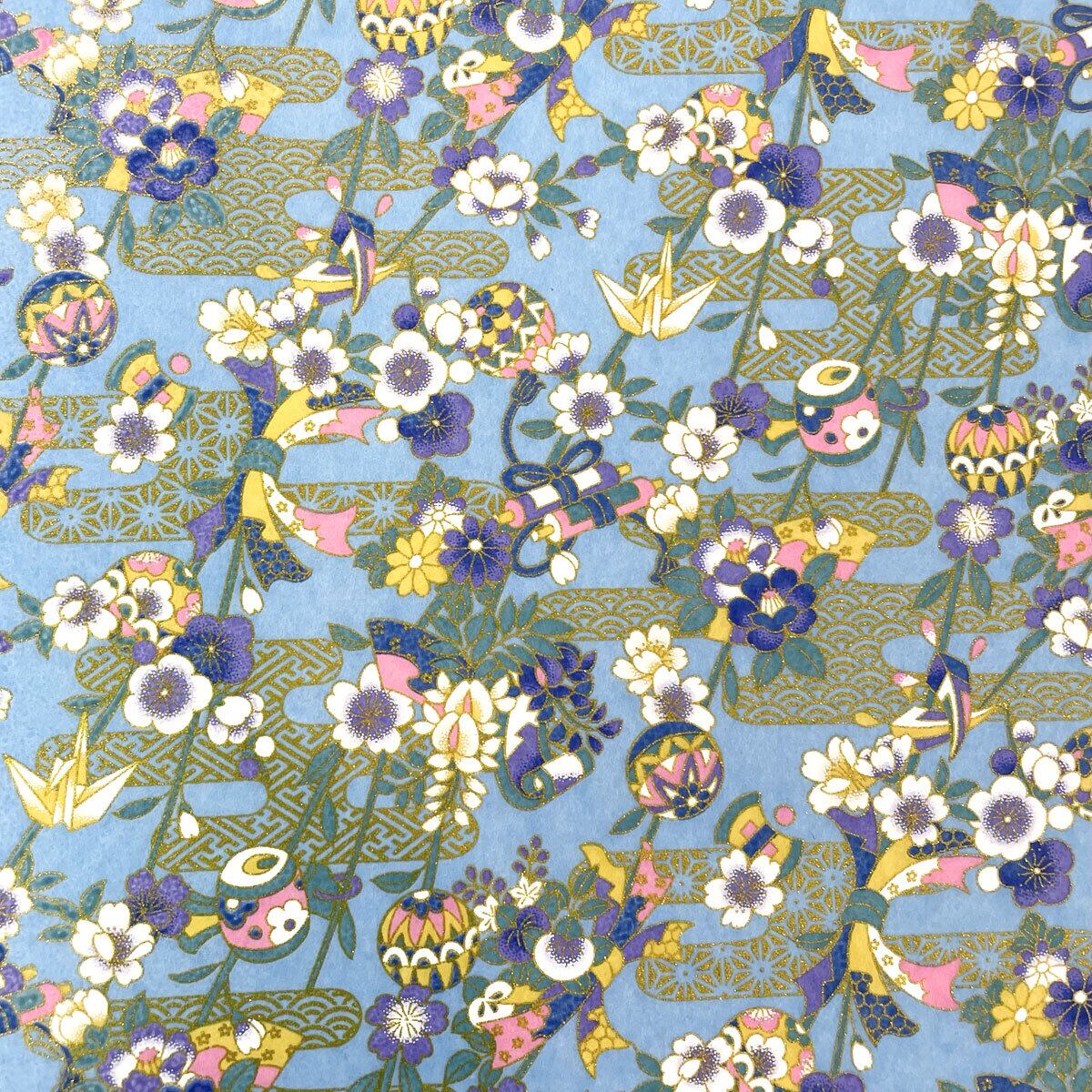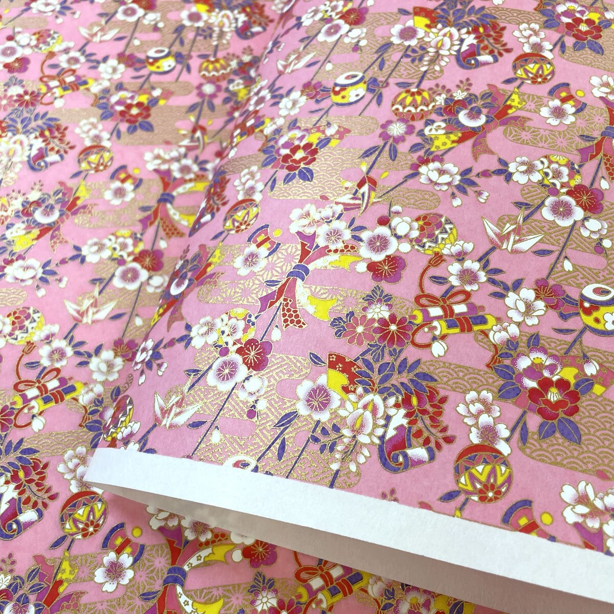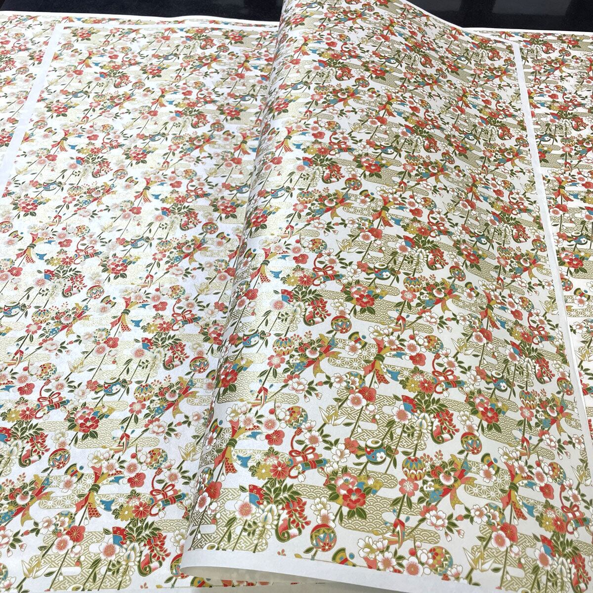 華やかな友禅紙 華やか熨斗と毬 桜と梅 折り鶴 赤 ピンク 水色 白 大判 約63x95㎝ YUZEN dyeing 千代紙 59619136