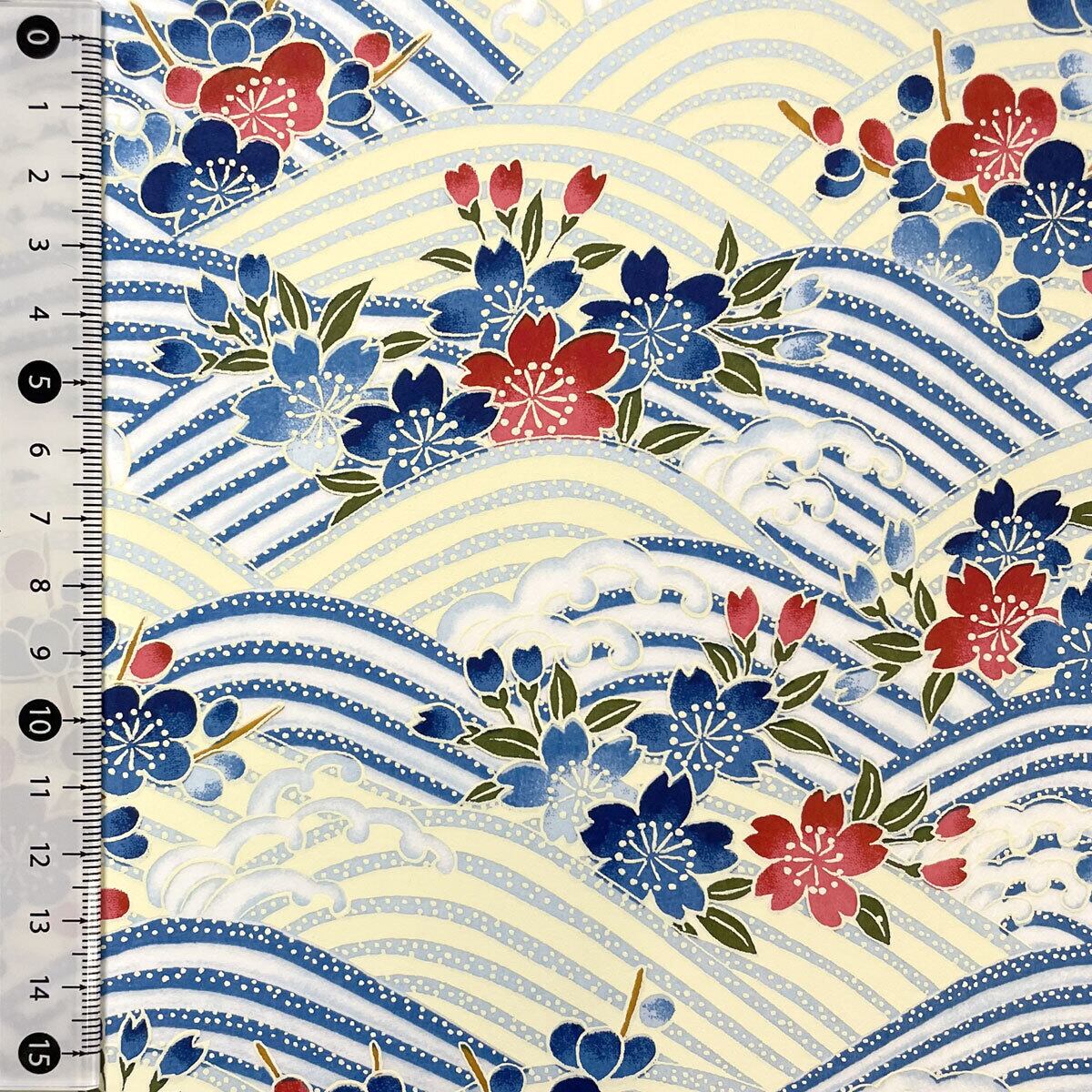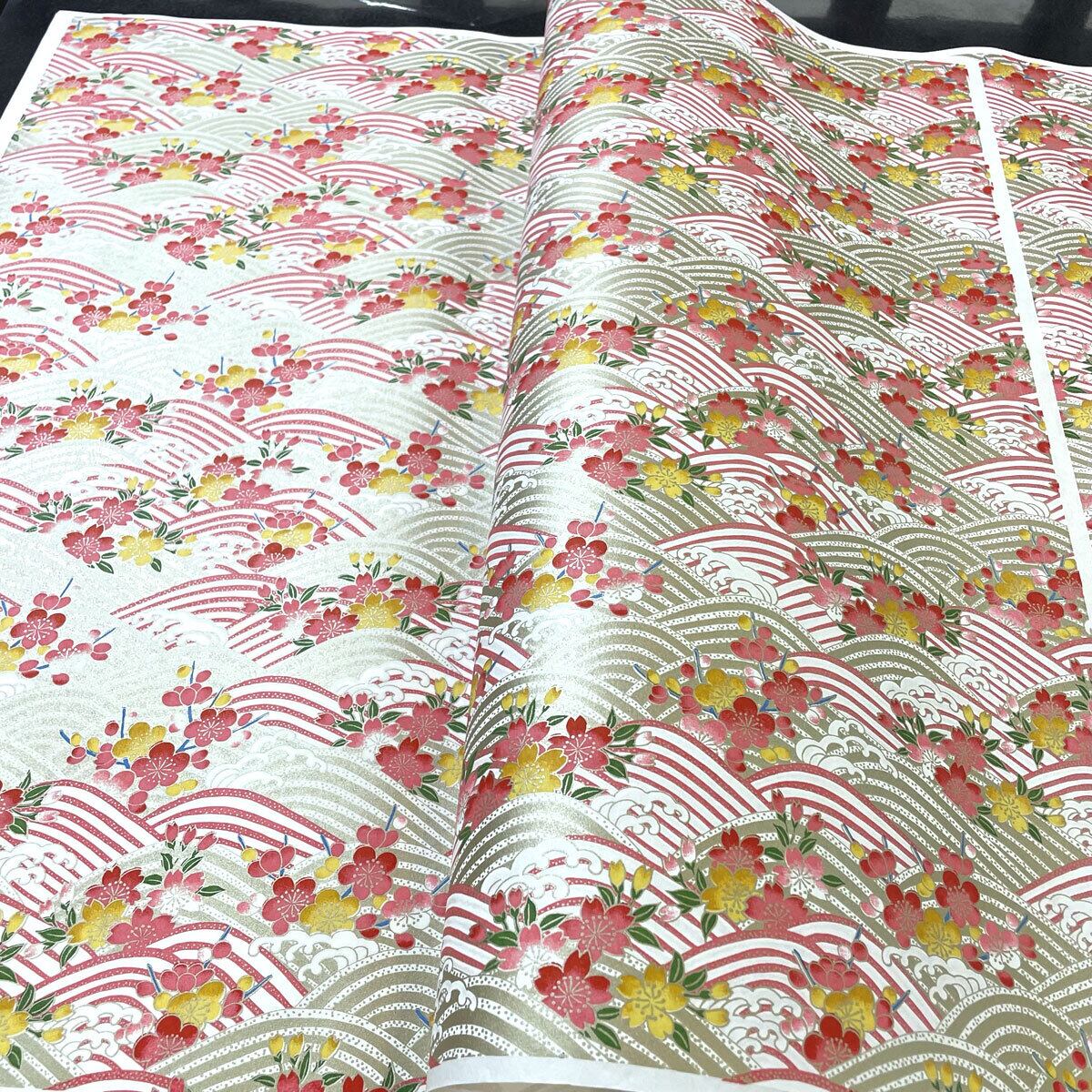 華やかな友禅紙 YUZEN dyeing さわやか春らしい 桜 梅 波 ピンク系 ブルー系 約63x95㎝
