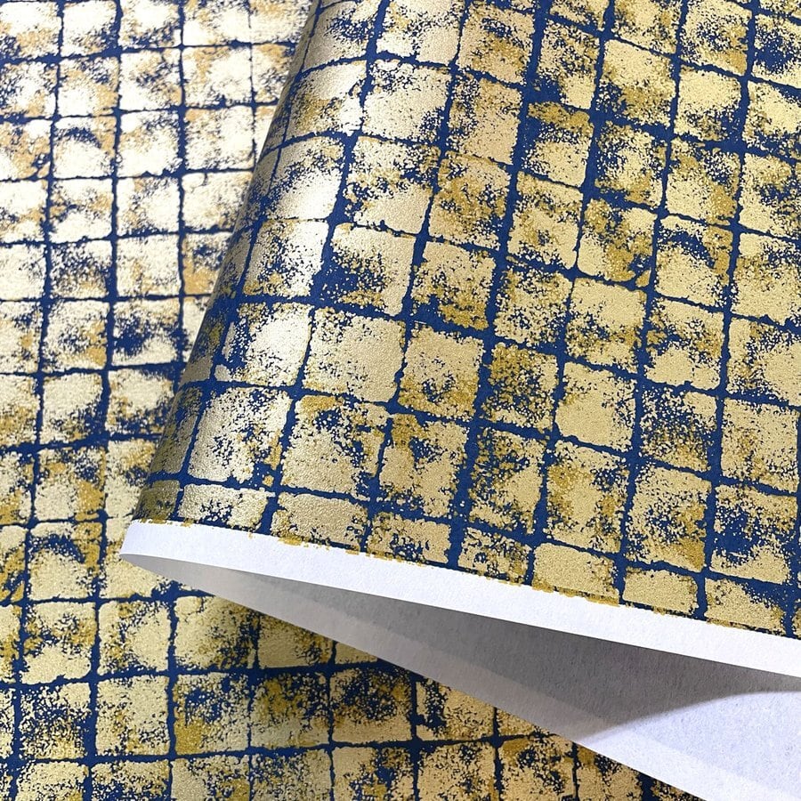 華やかな友禅紙 YUZEN dyeing 豪華金地 金市松 青 紺 約63x95㎝