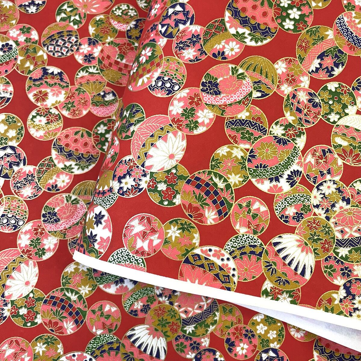 華やかな友禅紙 YUZEN dyeing 手毬づくし てまり 赤 緑 水色 菊判 大判 約63x93cm