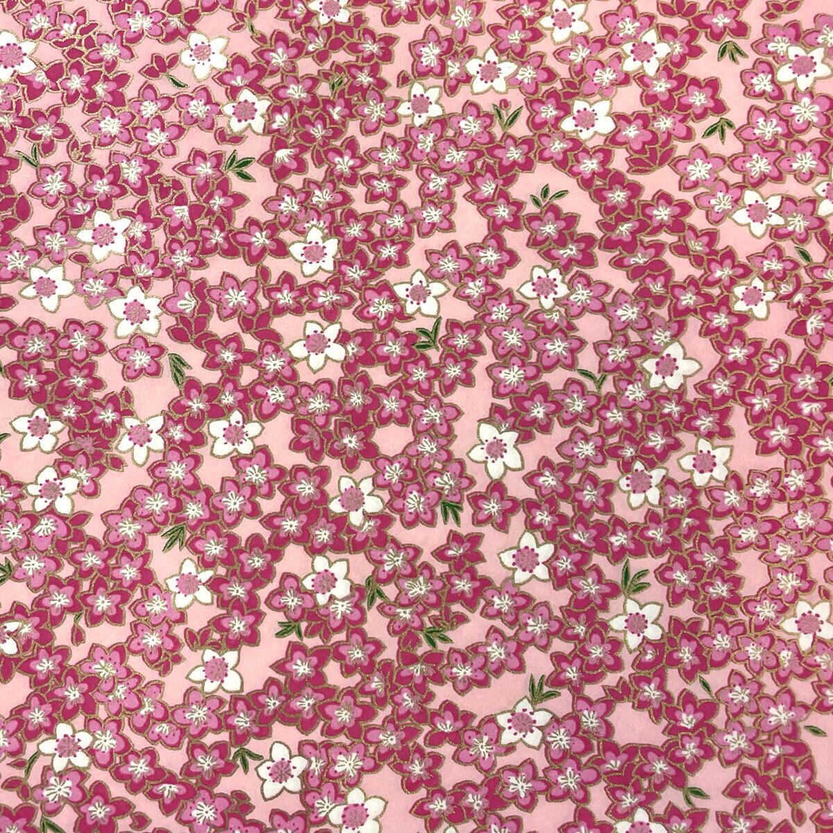 友禅紙 YUZEN dyeing 満開の桃の花 可愛い ピンク 桃色 小花 大判 菊判 約63x93cm