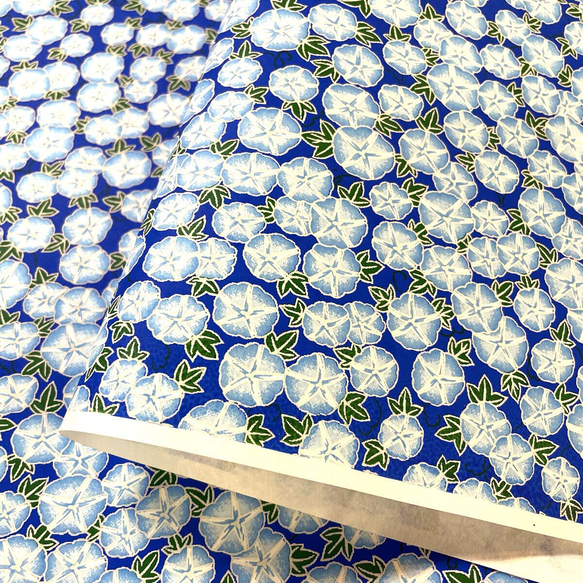 華やかな友禅紙 朝顔 夏の花 青 YUZEN dyeing 約63x95㎝