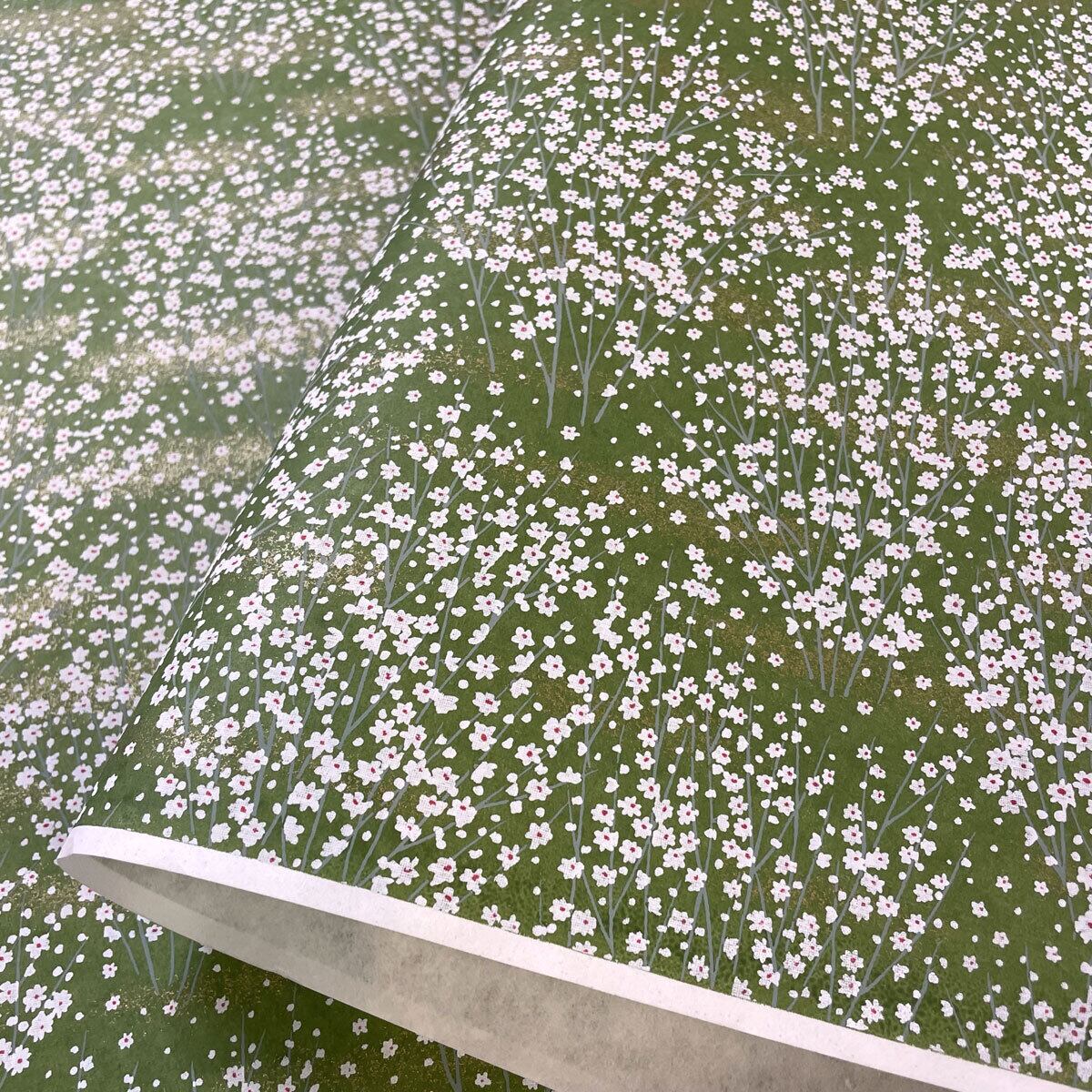 友禅和紙 可憐なカスミソウ かすみ草 アイボリー 緑 青 YUZEN dyeing 約63x95㎝