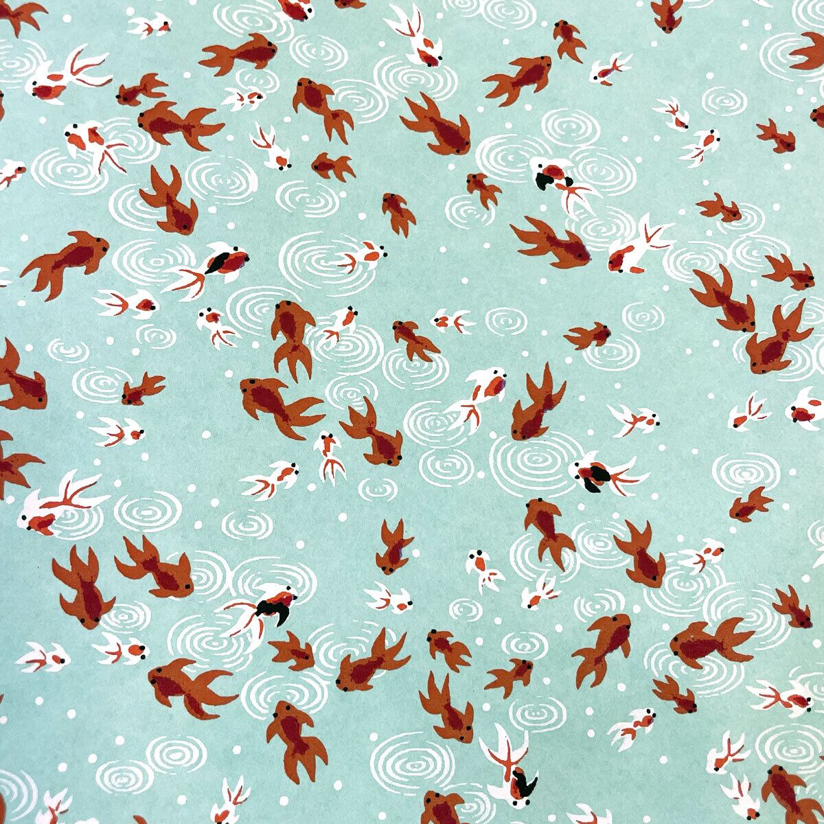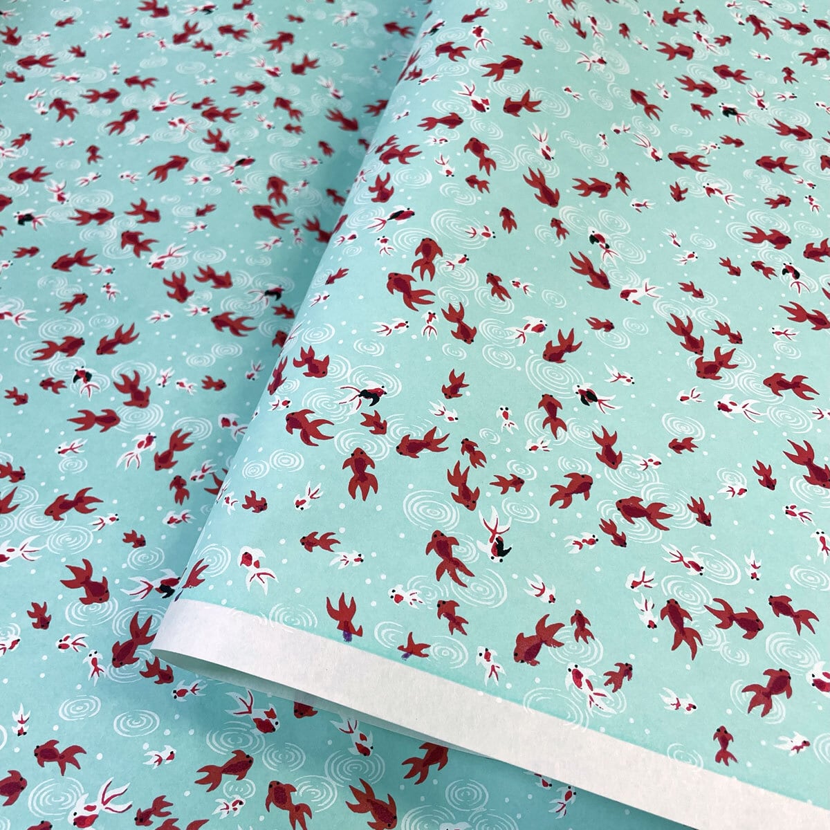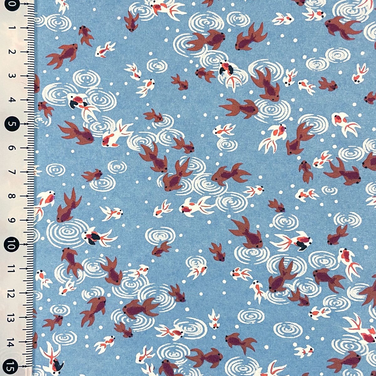 友禅紙 YUZEN dyeing 金魚 夏祭り 夏の風景 青 桃色 ブルー ピンク 大判 約6 3x93cm
