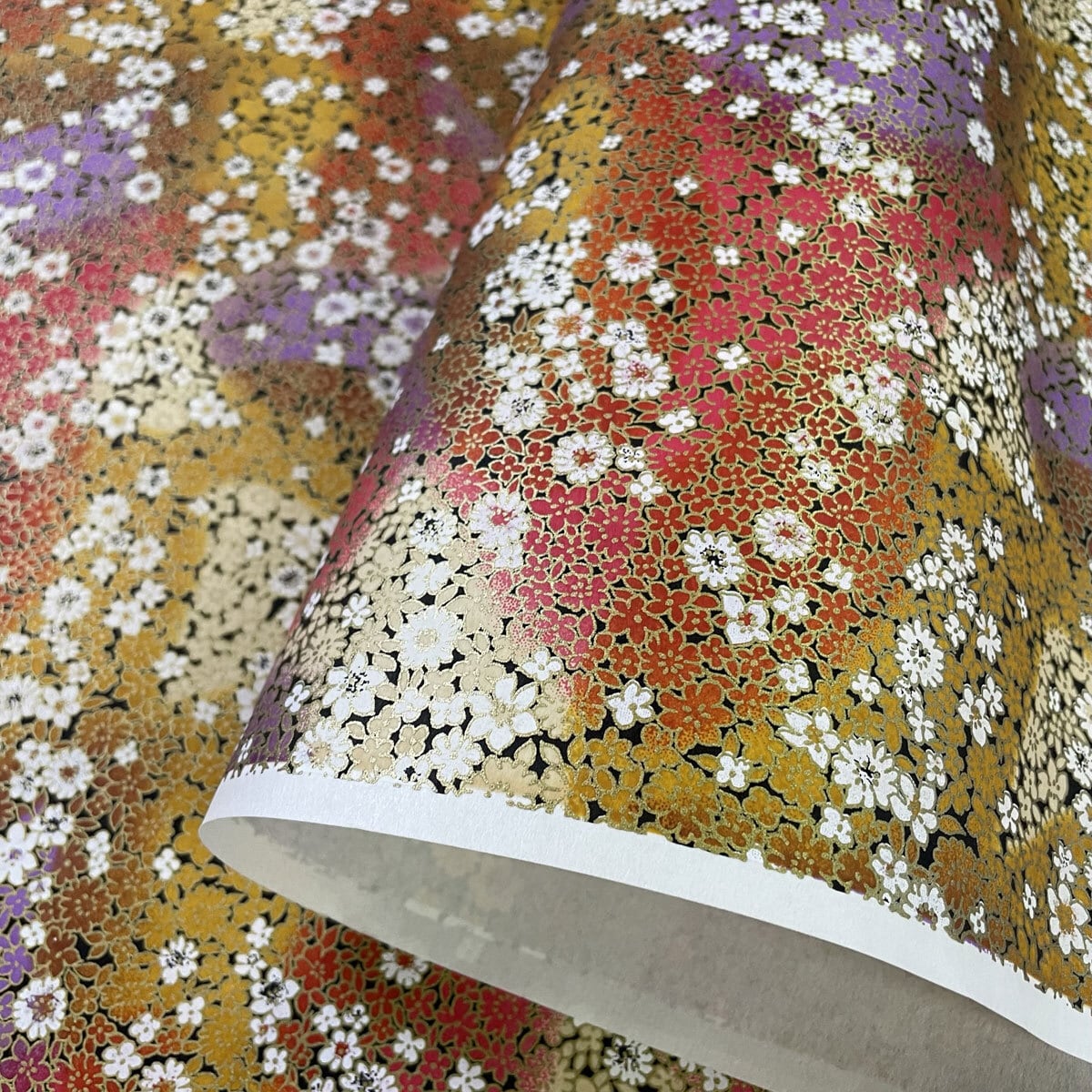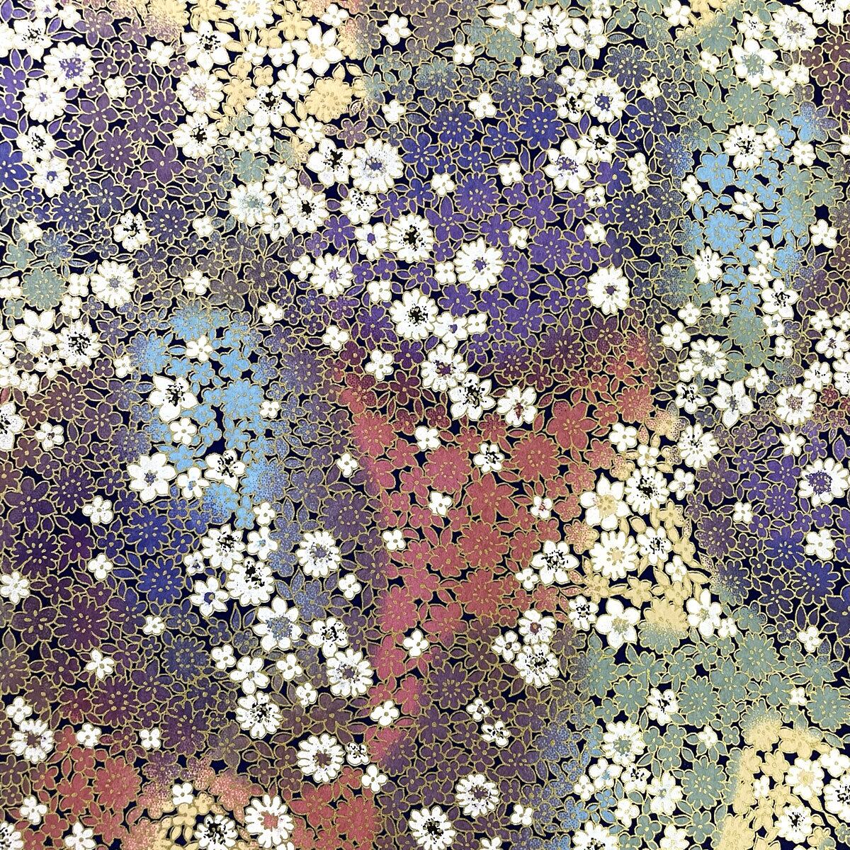 華やかな友禅和紙 咲き競う小花 金と色ぼかし 大判 約63x93cm