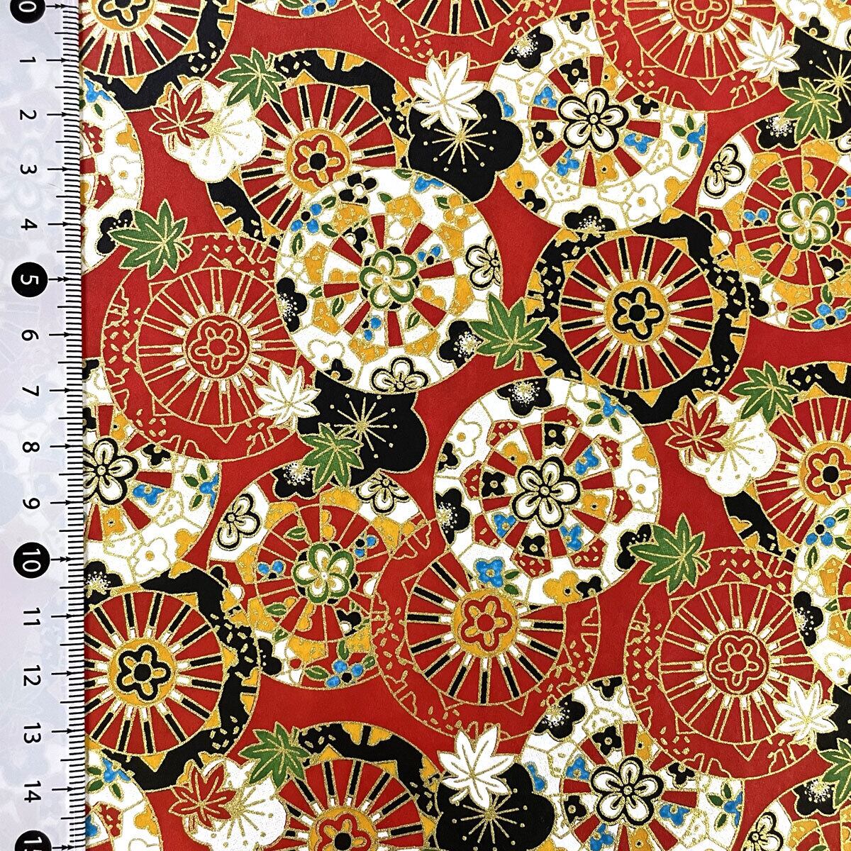 友禅和紙 華やか 源氏車紋 片輪車紋 車輪 御所車 赤地 大判 菊判 約63x93cm 65655610