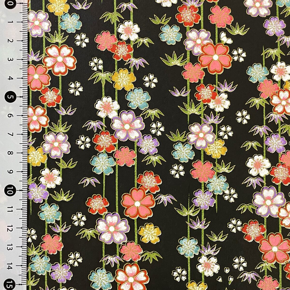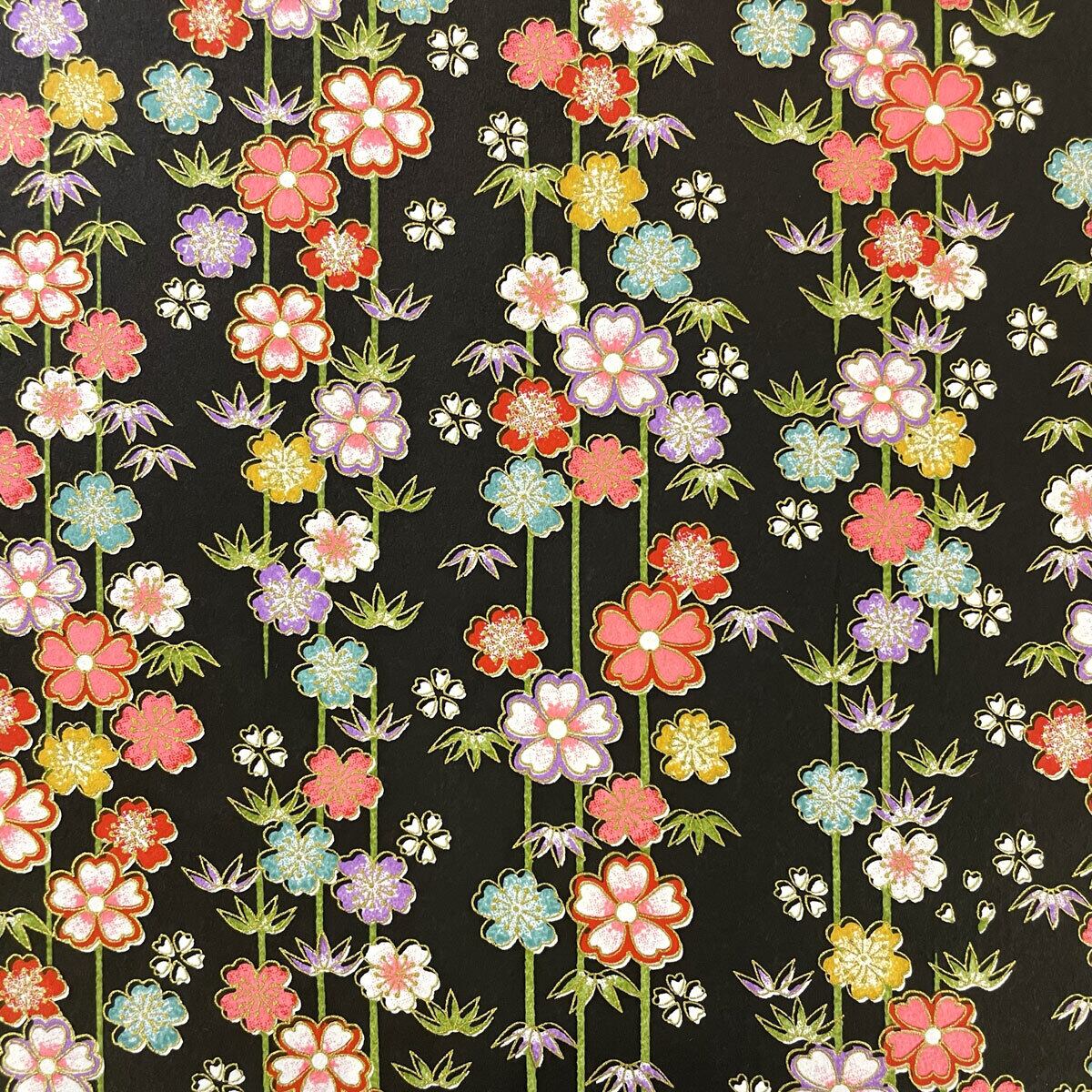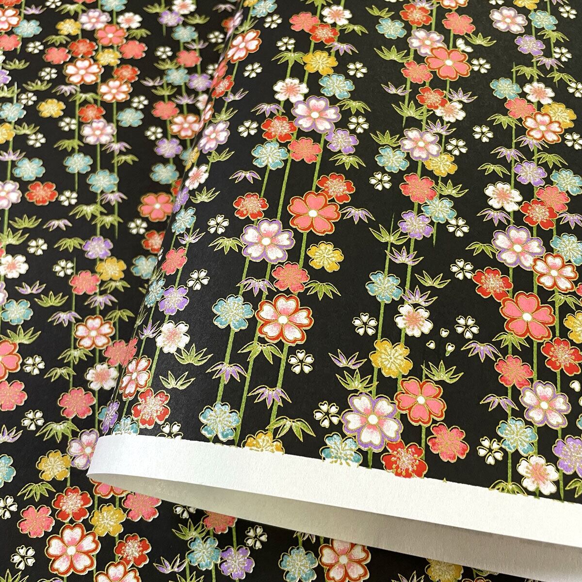 友禅和紙 華やか 竹に小花 黒地 菊判 大判 約63x93cm