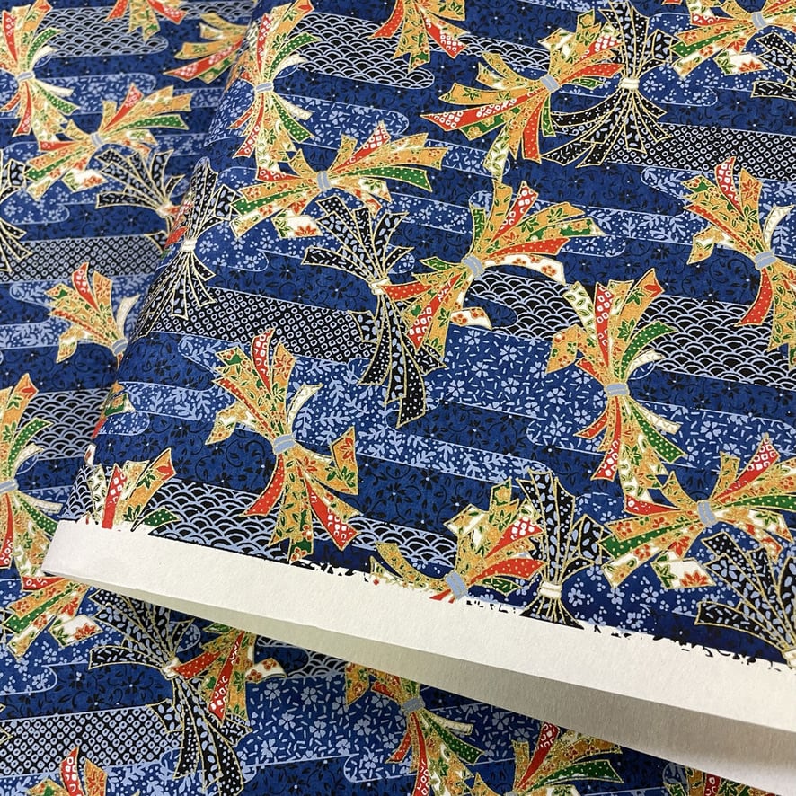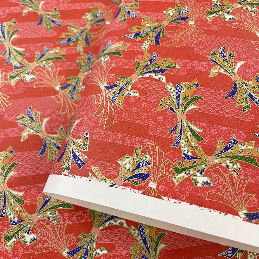 華やかな友禅和紙 朽木形に熨斗 古典柄 赤 青 大判 約63x93cm